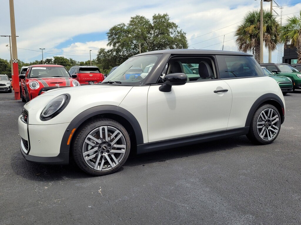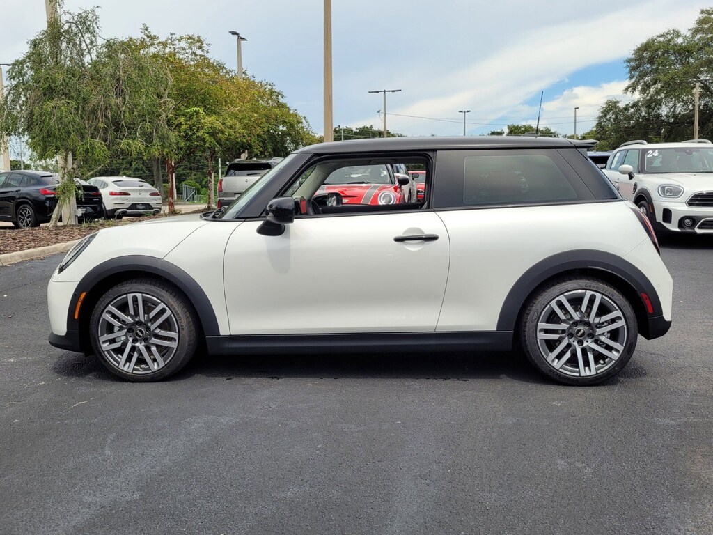 ABS brakes, Active Driving Assistant, Alloy wheels, Auto-Dimming Interior & Exterior Mirrors, Auto-Dimming Rear-View Mirror, Body Color Roof, Brake assist, Classic Style, Classic Trim Specific Additional Content, Comfort Access Keyless Entry, Comfort Package, Electronic Stability Control, Four wheel independent suspension, Front dual zone A/C, Headliner In Grey, Heated door mirrors, Heated Front Seats, Heated front seats, Illuminated entry, Low tire pressure warning, Power moonroof, Remote keyless entry, Signature Plus Trim, Speed-sensing steering, Sports Steering Wheel, Traction control, Wireless Device Charging. 2025 MINI Cooper S 2D Hatchback Nanuq White Metallic