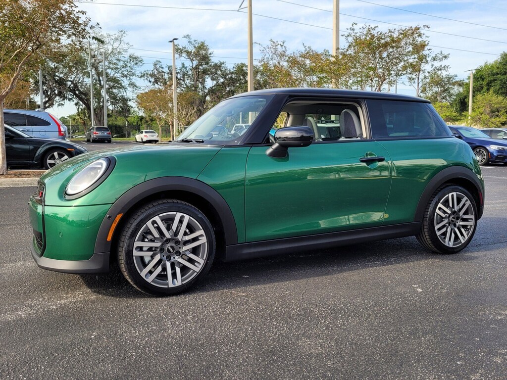 ABS brakes, ACC Stop & Go + Active Driving Assistant, Active Driving Assistant, Alloy wheels, Auto-Dimming Interior & Exterior Mirrors, Auto-Dimming Rear-View Mirror, Brake assist, Comfort Access Keyless Entry, Comfort Package, Comfort Package Plus, Electronic Stability Control, Four wheel independent suspension, Front dual zone A/C, harman/kardon Surround Sound System, Heated door mirrors, Heated Front Seats, Heated front seats, Iconic Trim, Illuminated entry, Interior Camera, Low tire pressure warning, MINI Navigation AR, Parking Assistant Plus, Power moonroof, Remote keyless entry, Speed-sensing steering, Traction control, Wireless Device Charging. 2025 MINI Cooper S 2D Hatchback British Racing Green IV Metallic