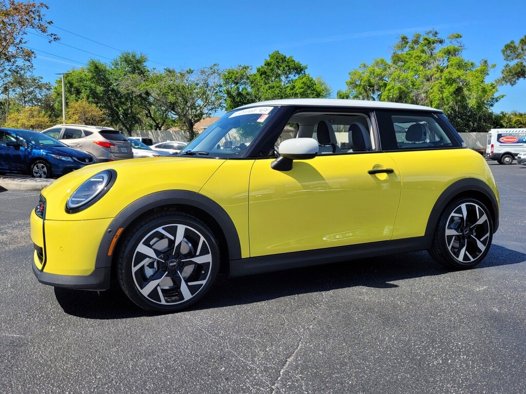 ABS brakes, Active Driving Assistant, Alloy wheels, Auto-Dimming Interior & Exterior Mirrors, Auto-Dimming Rear-View Mirror, Body Color Roof, Brake assist, Classic Style, Classic Trim Specific Additional Content, Comfort Access Keyless Entry, Comfort Package, Electronic Stability Control, Four wheel independent suspension, Front dual zone A/C, Headliner In Grey, Heated door mirrors, Heated Front Seats, Heated front seats, Illuminated entry, Low tire pressure warning, Power moonroof, Remote keyless entry, Signature Plus Trim, Speed-sensing steering, Sports Steering Wheel, Traction control, Wireless Device Charging. 2025 MINI Cooper S 2D Hatchback Sunny Side Yellow