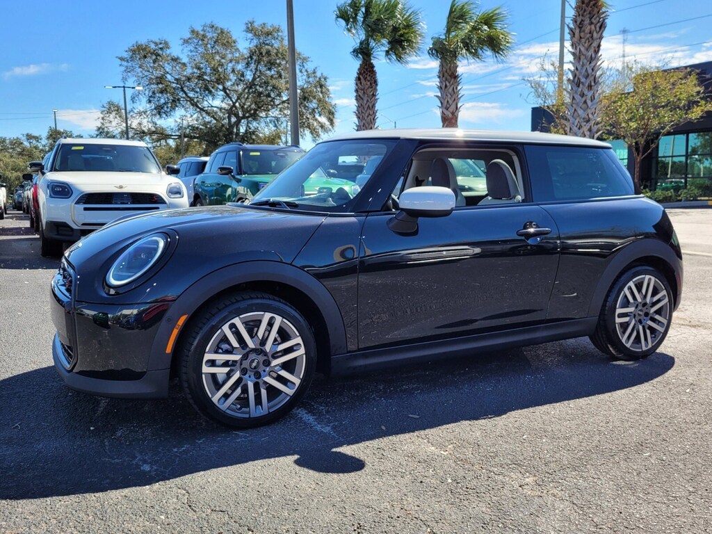 ABS brakes, Active Driving Assistant, Alloy wheels, Auto-Dimming Interior & Exterior Mirrors, Auto-Dimming Rear-View Mirror, Body Color Roof, Classic Style, Classic Trim Specific Additional Content, Comfort Access Keyless Entry, Comfort Package, Electronic Stability Control, Front dual zone A/C, Heated door mirrors, Heated Front Seats, Heated front seats, Illuminated entry, Low tire pressure warning, Power moonroof, Remote keyless entry, Signature Plus Trim, Sports Steering Wheel, Traction control, Wireless Device Charging. 2025 MINI Cooper S 2D Hatchback Midnight Black II Metallic