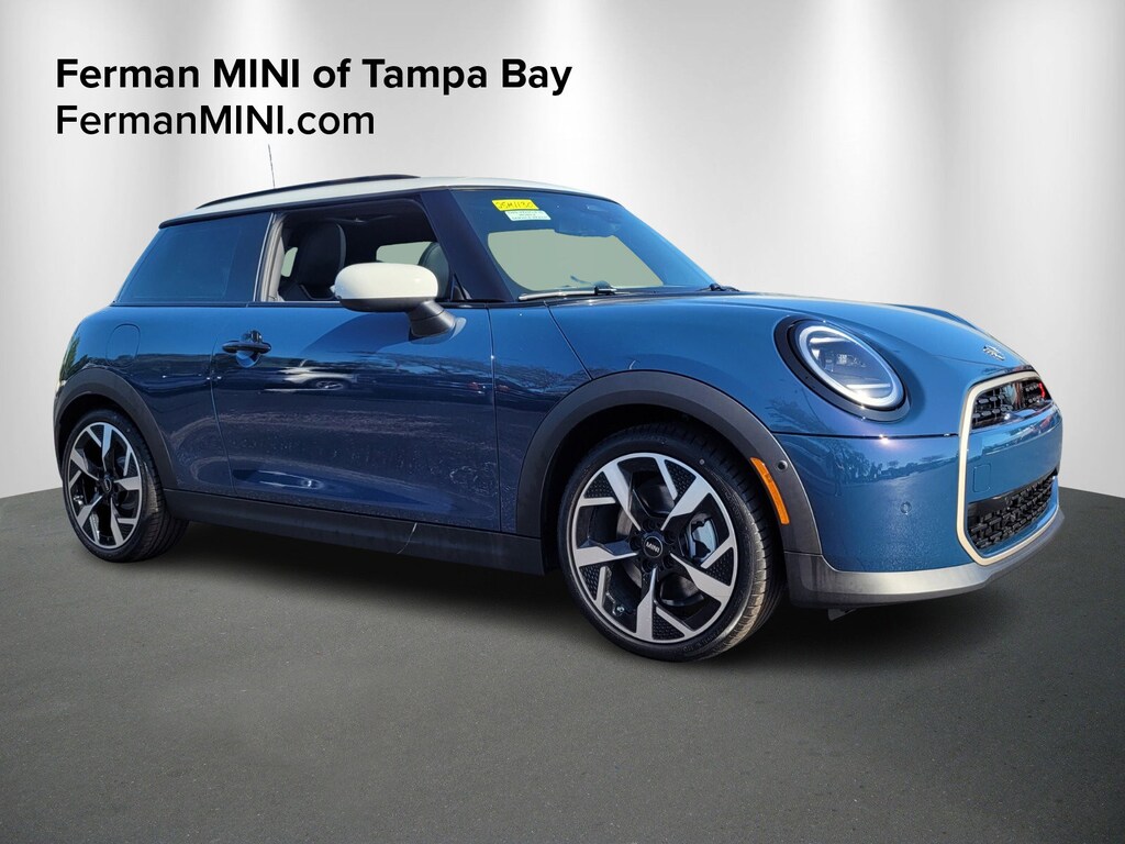 ABS brakes, Active Driving Assistant, Alloy wheels, Auto-Dimming Interior & Exterior Mirrors, Auto-Dimming Rear-View Mirror, Body Color Roof, Brake assist, Classic Style, Classic Trim Specific Additional Content, Comfort Access Keyless Entry, Comfort Package, Electronic Stability Control, Four wheel independent suspension, Front dual zone A/C, Headliner In Grey, Heated door mirrors, Heated Front Seats, Heated front seats, Illuminated entry, Low tire pressure warning, Power moonroof, Remote keyless entry, Signature Plus Trim, Speed-sensing steering, Sports Steering Wheel, Traction control, Wireless Device Charging. 2025 MINI Cooper S 2D Hatchback Indigo Sunset Blue Metallic