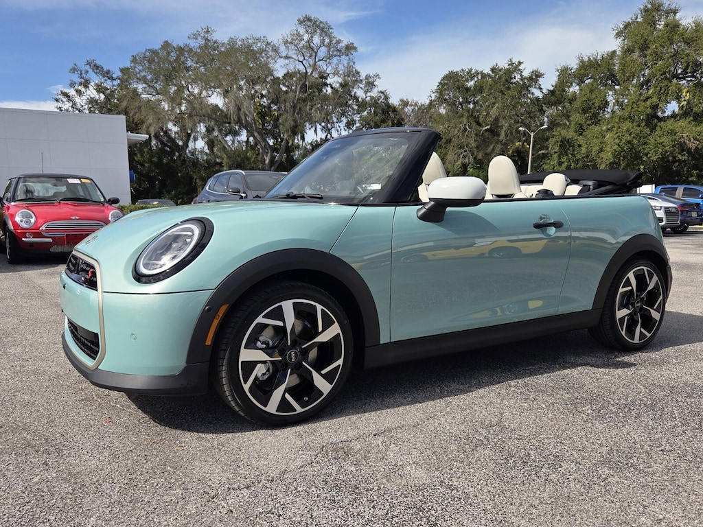 ABS brakes, Alloy wheels, Brake assist, Electronic Stability Control, Front dual zone A/C, Heated door mirrors, Heated Front Seats, Heated front seats, Illuminated entry, Low tire pressure warning, Power moonroof, Remote keyless entry, Traction control. 2026 MINI Cooper S 2D Convertible Ocean Wave Green Metallic