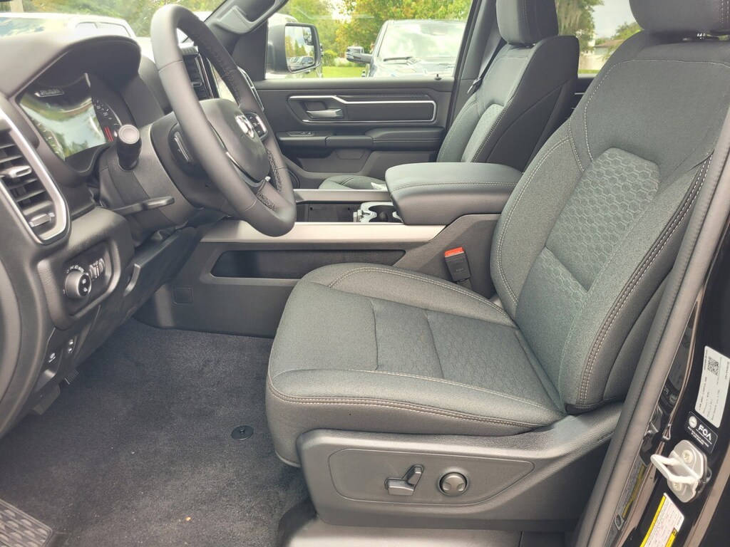 QUICK ORDER PACKAGE 23Z BIG HORN -inc: Engine: 3.6L V6 24V VVT eTorque UPG I, Transmission: 8-Speed Automatic (850RE), Big Horn Badge , TIRES: 275/55R20 OWL ALL SEASON -inc: Bridgestone Brand Tires, RADIO: UCONNECT 5 NAV W/12.0" DISPLAY, NIGHT EDITION -inc: Tires: 275/55R20 OWL All Season, Accent Color Premium Power Mirrors, Exterior Mirrors w/Supplemental Signals, Black Headlamp Bezels, Exterior Mirrors Courtesy Lamps, Grille Black Surround Black Mesh, Auto Power-Folding Mirrors, Wheels: 20" x 9.0" Aluminum Painted Clad, Auto Dim Exterior Driver Mirror, Black Exterior Truck Badging, Anti-Spin Differential Rear Axle, Accent Color Door Handles, Accent Color Tailgate Handle, Black Interior Accents, Body Color Front Bumper, Body Color Rear Bumper w/Step Pads, Black Tail Lamp Bezels, RAM Grille Badge - Black, Black Painted Exterior Mirrors Caps, MANUFACTURER'S STATEMENT OF ORIGIN, GVWR: 6,900 LBS (STD), ENGINE: 3.6L V6 24V VVT ETORQUE UPG I (STD), DIAMOND BLACK CRYSTAL PEARLCOAT, BLACK, DELUXE CLOTH BUCKET SEATS -inc: Bucket Seats, Full Length Floor Console, Power Adjust 8-Way Driver Seat, Rear Center Armrest, Power 2-Way Driver Lumbar Adjust, BIG HORN LEVEL 2 EQUIPMENT GROUP -inc: Google Android Auto, Power Adjustable Pedals, Leather Wrapped Steering Wheel, 12" Touchscreen Display, Glove Box Lamp, Auto Power-Folding Mirrors, 115V Auxiliary Rear Power Outlet, Media Hub w/2 Charge Only USBs, Heated Front Seats, Security Alarm, Black Premium Power Mirrors, Apple CarPlay, Premium Overhead Console, 9 Amplified Speakers w/Subwoofer, Remote Tailgate Release, 115V Auxiliary Power Outlet, LED Dome Lamp w/On/Off Switch, Universal Garage Door Opener, 2nd Row In Floor Storage Bins, Sun Visors w/Illuminated Vanity Mirrors, LED Footwell Lighting, Power 2-Way Driver Lumbar Adjust, Rear Window Defroster, Rear View Auto Dim Mirror, Rear Power Sliding Window, GPS Navigation, Overhead LED Lamps, Auto Dim Exterior Driver Mirror, SiriusXM w/360L, Connected Travel & Traffic Services, Heated Steering Wheel, Configurable Drive Mode, 400W Inverter, HD Radio, Radio: Uconnect 5 Nav w/12.0" Display, Exterior Mirrors w/Supplemental Signals, Steering W.