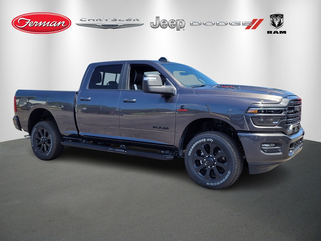 Granite Crystal Metallic Clearcoat 2025 2500 Laramie 4WD 8-Speed Automatic 6.7L I6 #1 Seat Foam Cushion, 10 Speakers, 115V Auxiliary Rear Power Outlet, 2 Way Rear Headrest Seat, 2nd Row In Floor Storage Bins, 4 Way Front Headrests, 4-Wheel Disc Brakes, 4G LTE Wi-Fi Hot Spot, ABS brakes, Active Lane Management System, Adaptive Steering System, Air Conditioning, Alexa Built-In, Alloy wheels, AM/FM radio: SiriusXM with 360L, Anti-Spin Differential Rear Axle, Apple CarPlay, Apple CarPlay/Android Auto, Auto Adjust In Reverse Exterior Mirrors, Auto Dim Exterior Mirror, Auto High Beam Headlamp Control, Auto Power-Folding Mirrors, Auto-Dimming Exterior Passenger Mirror, Auto-dimming Rear-View mirror, Automatic temperature control, Black Exterior Mirrors, Black Exterior Truck Badging, Black Wheel Center Hub, Body Color Grille Surround, Brake assist, Bucket Seats, Bumpers: body-color, Chrome Exterior Mirrors, Cold Weather Group, Compass, Connected Travel & Traffic Services, Connectivity - US/Canada, CTR Stop Lamp w/Cargo View Camera, Dash Pass Thru Wire Circuits, Delay-off headlights, Delete Deployable Bed Step (DISC), Disassociated Touchscreen Display, Driver door bin, Driver vanity mirror, Drowsy Driver Detection, Dual front impact airbags, Dual front side impact airbags, Dual Wireless Charging Pad, Electronic Stability Control, Emergency Vehicle Alert System (EVAS), Engine Block Heater, Exterior Mirrors Courtesy Lamps, Exterior Mirrors w/Heating Element, Exterior Mirrors w/Memory, Exterior Mirrors w/Supplemental Signals, Foam Bottle Insert (Door Trim Panel), Folding Flat Load Floor Storage, Forward & Reverse Utility Lights, Front anti-roll bar, Front Center Armrest w/Storage, Front dual zone A/C, Front fog lights, Front reading lights, Front Seat Back Map Pockets, Full Length Upgraded Floor Console, Fully automatic headlights, Garage door transmitter, Global Telematics Box Module (TBM), Gloss Black Grille Billets/Accents, Google Android Auto, GPS Antenna Input, HD Radio, Heated door mirrors, Heated Front Seats, Heated front seats, Heated Steering Wheel, Heated steering wheel, High Back Seats, I/P Mounted Auxiliary Switches, Illuminated entry, Integrated Voice Command w/Bluetooth, Laramie Level 1 Plus Equipment Group, Leather Trim 40/20/40 Bench Seat, Leather Trimmed Bucket Seats, LED Bed Lighting, Low tire pressure warning, Manufacturer's Statement of Origin, Mirror Running Lights, MOPAR Deployable Bed Step, MOPAR Spray In Bedliner, MOPAR Winter Front Grille Cover, Navigation System, Night Edition, Occupant sensing airbag, Outside temperature display, Overhead airbag, Overhead console, Painted Flat Wheel-to-Wheel Side Steps, Panic alarm, ParkView Rear Back-Up Camera, Passenger door bin, Passenger vanity mirror, Power 2-Way Driver Lumbar Adjust, Power 2-Way Passenger Lumbar Adjust, Power Adjust 8-Way Driver Seat, Power Adjust 8-Way Front Passenger Seat, Power Adjust Mirrors, Power Adjustable Convex Aux Mirrors, Power Adjustable Pedals w/Memory, Power door mirrors, Power driver seat, Power Heated Fold Telescopic Mirrors w/Memory, Power passenger seat, Power steering, Power Telescoping Mirrors, Power windows, Quick Order Package 24H Laramie, Radio data system, Radio: Uconnect 5 Nav w/12.0" Display, Rain Sensitive Windshield Wipers, Rear 60/40 Folding Seat, Rear anti-roll bar, Rear Backup Alarm, Rear reading lights, Rear seat center armrest, Rear step bumper, Rear window defroster, Remote keyless entry, Remote Tailgate Release, Security system, Selectable Tire Fill Alert, SiriusXM Radio Service, Speed control, Split folding rear seat, Sport Performance Hood, Steering wheel mounted audio controls, Surround View Camera System, Tachometer, Tilt steering wheel, Towing Technology Group, Traction control, Traffic Sign Recognition, Trailer Reverse Guidance, Trailer Tire Pressure Monitoring System, Trip computer, Turn signal indicator mirrors, Variably intermittent wipers, Vol Price includes: $2000 - 2025 National Bonus Cash . Exp. 11/03/2025