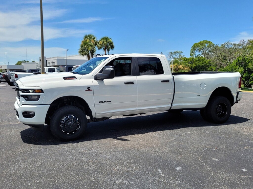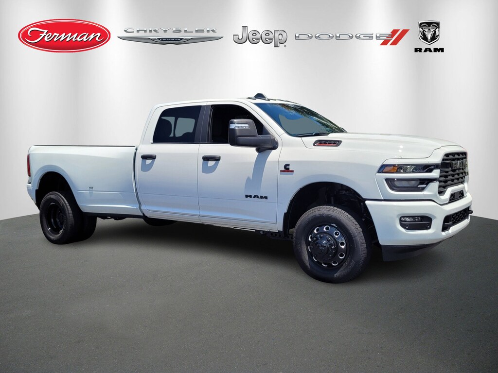 Bright White Clearcoat 2025 3500 Big Horn 4WD 8-Speed Automatic 6.7L I6 115V Auxiliary Front Power Outlet, 115V Auxiliary Rear Power Outlet, 12" Touchscreen Display, 2 Way Rear Headrest Seat, 2nd Row In Floor Storage Bins, 3.42 Axle Ratio, 3.73 Axle Ratio, 4 Way Front Headrests, 4-Wheel Disc Brakes, 40/20/40 Split Bench Seat, 400W Inverter, 4G LTE Wi-Fi Hot Spot, 50 Gallon Fuel Tank, 5th Wheel/Gooseneck Towing Prep Group, 6 Speakers, 6000# Front Axle w/Hub Ext, 9 Alpine Speakers w/Subwoofer, ABS brakes, Active Lane Management System, Adaptive Steering System, Air Conditioning, Air Conditioning ATC w/Dual Zone Control, Alexa Built-In, Alloy wheels, AM/FM radio: SiriusXM, Apple CarPlay, Apple CarPlay/Android Auto, Auto High Beam Headlamp Control, Auto Power-Folding Mirrors, Auto-Dimming Rear-View Mirror, Big Horn Level 2 Plus Equipment Group, Black Exterior Mirrors, Black Exterior Truck Badging, Black Interior Accents, Black Wheel Center Hub, Blind Spot & Cross Path Detection, Body Color Grille Surround, Box & Rear Fender Clearance Lamps, Brake assist, Bucket Seats, Bumpers: chrome, Center Hub, Clearance Lamps, Cloth 40/20/40 Bench Seat, Cluster 7.0" TFT Color Display, Compass, Connected Travel & Traffic Services, Connectivity - US/Canada, CTR Stop Lamp w/Cargo View Camera, Dampened Tailgate, Dash Pass Thru Wire Circuits, Delay-off headlights, Disassociated Touchscreen Display, Driver door bin, Drowsy Driver Detection, Dual front impact airbags, Dual front side impact airbags, Dual Glove Boxes, Dual Rear Wheels, Dual Wireless Charging Pad, Electronic Stability Control, Emergency Vehicle Alert System (EVAS), Engine Block Heater, Exterior 115V AC Outlet, Exterior Mirrors Courtesy Lamps, Exterior Mirrors w/Heating Element, Exterior Mirrors w/Supplemental Signals, Foam Bottle Insert (Door Trim Panel), Folding Flat Load Floor Storage, Footwell Courtesy Lamp, For Details Visit DriveUconnect.com, For More Info, Call 800-643-2112, Forward & Reverse Utility Lights, Front anti-roll bar, Front Armrest w/Cupholders, Front Center Armrest w/Storage, Front fog lights, Front reading lights, Front Seat Back Map Pockets, Full Length Upgraded Floor Console, Fully automatic headlights, Global Telematics Box Module (TBM), Gloss Black Nostrils/Molded in Color Black Grille, Glove Box Lamp, Google Android Auto, GPS Antenna Input, GPS Navigation, HD Radio, Heated door mirrors, Heated Front Seats, Heated Steering Wheel, I/P Mounted Auxiliary Switches, Illuminated entry, Integrated Voice Command w/Bluetooth, LED Bed Lighting, LED Tail Lamps, Locking Lower Glove Box, Low tire pressure warning, Luxury Steering Wheel, Manual Adjust 4-Way Driver Seat, Manual Adjust 4-Way Front Passenger Seat, Manufacturer's Statement of Origin, Media Hub w/2 Charge Only USBs, Mirror Running Lights, MOPAR Deployable Bed Step, MOPAR Front & Rear Rubber Floor Mats, MOPAR Spray In Bedliner, Night Edition, Occupant sensing airbag, Off-Road Information Pages, Outside temperature display, Overhead airbag, Overhead console, Painted Front Bumper, Painted Rear Bumper, Panic alarm, ParkView Rear Back-Up Camera, Passenger door bin, Passenger vanity mirror, Power 2-Way Driver Lumbar Adjust, Power Adjust 8-Way Driver Seat, Power Adjust Mirrors, Power Adjustable Pedals, Power door mirrors, Power Heated Fold Telescopic Mirrors, Power steering, Power Telescoping Mirrors, Power windows, Power-Adjustable Convex Aux Mirrors, Premium Cloth Bucket Seats, Quick Order Package 24Z Big Horn, Radio data system, Radio: Uconnect 5 Nav w/12.0" Display, Radio: Uconnect 5 w/8.4" Display, Rain Sensitive Windshield Wipers, Rear 60/40 Folding Seat, Rear Dome w/On/Off Switch Lamp, Rear Folding Seat, Rear Power Sliding Window, Rear seat center armrest, Rear step bumper, Rear Wheelhouse Liners, Rear window defroster, Red Tail Lamp Bezels, Remote keyless entry, Remote Start System, Remote USB Port - Charge Only, Selectable Tire Fill Alert, Siriu Price includes: $2000 - 2025 National Bonus Cash . Exp. 11/03/2025