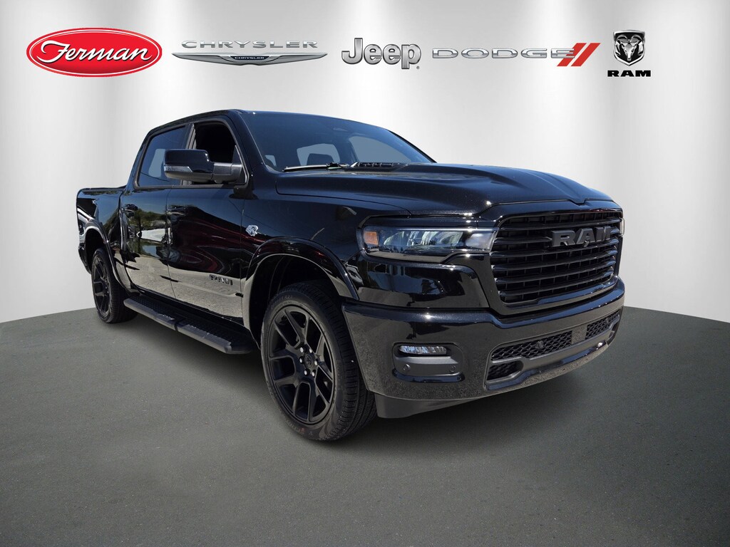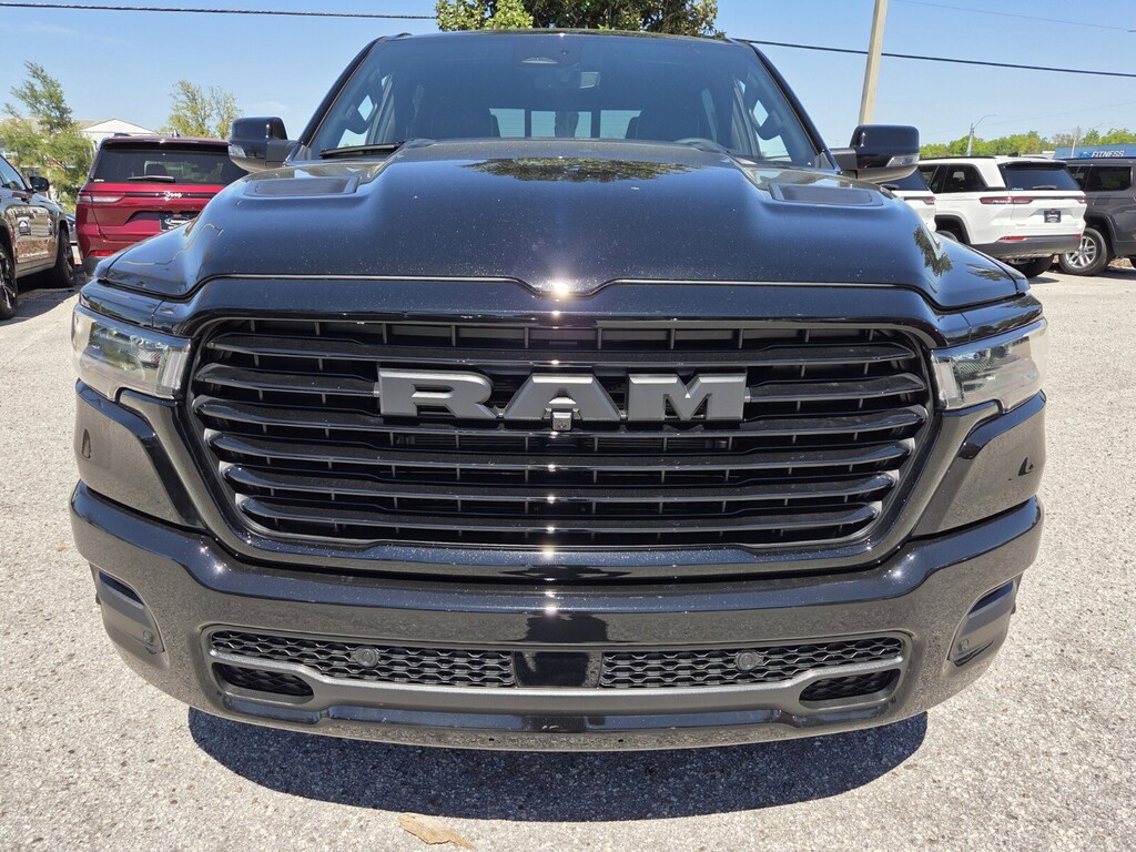 QUICK ORDER PACKAGE 27H LARAMIE -inc: Engine: 5.7L V8 HEMI MDS VVT eTorque, Transmission: 8-Speed Automatic (8HP75) , TIRES: 285/45R22XL BSW ALL SEASON, RADIO: UCONNECT 5 NAV W/14.4" DISPLAY, NIGHT EDITION -inc: Black Headlamp Bezels, Wheels: 22" x 9" Forged Aluminum, Tires: 285/45R22XL BSW All Season, Pirelli Brand Tires, Proximity Approach/Departure Lamps, Anti-Spin Differential Rear Axle, Accent Color Door Handles, Black Interior Accents, Body Color Front Bumper, Grille Surround 3 Black Texture 2 Black, Body Color Rear Bumper w/Step Pads, RAM Grille Badge - Black, Black Painted Exterior Mirrors Caps, Exterior Mirrors Approach Lamps, Accent Color Premium Power Mirrors, Sport Performance Hood, Black Exterior Truck Badging, Accent Color Tailgate Handle, Dual Exhaust w/Black Tips, Black Tail Lamp Bezels, MOPAR FRONT & REAR RUBBER FLOOR MATS, MOPAR BLACK TUBULAR SIDE STEPS, MANUFACTURER'S STATEMENT OF ORIGIN, LARAMIE LEVEL 2 EQUIPMENT GROUP -inc: Rain Sensitive Windshield Wipers, 14.4" Touchscreen Display, Front Passenger Interactive Display, Radio: Uconnect 5 Nav w/14.4" Display, harman/kardon 19 Speaker Premium Sound, Cluster 12" TFT Color Display, Power Tailgate, ENGINE: 5.7L V8 HEMI MDS VVT ETORQUE -inc: 48V Belt Starter Generator, Heavy Duty Engine Cooling, Passive Tuned Mass Damper, Delete Alternator, Passive Cold End Exhaust, 18" Aluminum Spare Wheel, DIAMOND BLACK CRYSTAL PEARLCOAT.