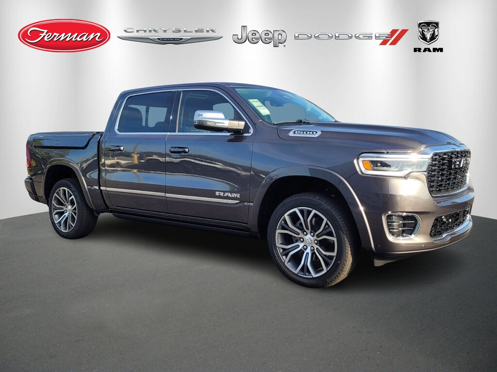 Granite Crystal Metallic Clearcoat 2026 1500 Tungsten 4WD 8-Speed Automatic 3.0L I6 12-Way/1-Way Trailer Connector, 3.92 Rear Axle Ratio, 4-Wheel Disc Brakes, ABS brakes, Adjustable pedals, Air Conditioning, Alloy wheels, AM/FM radio, Apple CarPlay/Android Auto, Audio memory, Auto High-beam Headlights, Auto Power-Folding Mirrors, Auto-dimming door mirrors, Auto-Dimming Exterior Driver Mirror, Auto-dimming Rear-View mirror, Auto-leveling suspension, Automatic temperature control, Bodyside moldings, Brake assist, Bumpers: body-color, Chrome Exterior Mirrors, Compass, Delay-off headlights, Driver door bin, Driver vanity mirror, Dual front impact airbags, Dual front side impact airbags, Electronic Stability Control, Exterior Mirrors Courtesy Lamps, Exterior Parking Camera Rear, Front anti-roll bar, Front Bucket Seats, Front Center Armrest w/Storage, Front dual zone A/C, Front fog lights, Front reading lights, Front wheel independent suspension, Fully automatic headlights, Garage door transmitter, Heads-Up Display, Heated door mirrors, Heated front seats, Heated rear seats, Heated steering wheel, Illuminated entry, Leather steering wheel, Low tire pressure warning, Manufacturer's Statement of Origin, Memory seat, Navigation System, Occupant sensing airbag, Outside temperature display, Overhead airbag, Overhead console, Panic alarm, Passenger door bin, Passenger vanity mirror, Pedal memory, Power adjustable front head restraints, Power door mirrors, Power driver seat, Power moonroof, Power passenger seat, Power steering, Power windows, Premium Leather Bucket Seats, Quick Order Package 22V Tungsten, Radio data system, Rain sensing wipers, Rear anti-roll bar, Rear reading lights, Rear seat center armrest, Rear step bumper, Rear window defroster, Remote keyless entry, Security system, Speed control, Split folding rear seat, Steering wheel mounted audio controls, Tachometer, Telescoping steering wheel, Tilt steering wheel, Traction control, Trailer Brake Control, Trip computer, Turn signal indicator mirrors, Variably intermittent wipers, Ventilated front seats, Ventilated rear seats, Voltmeter.