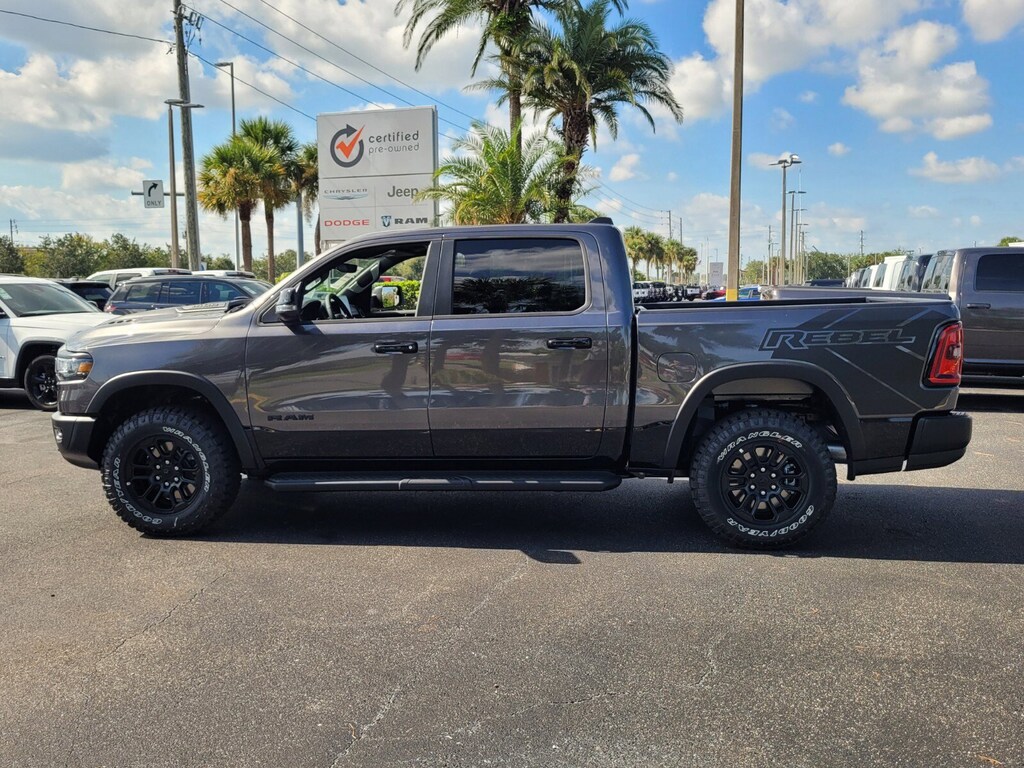 Granite Crystal Metallic Clearcoat 2026 1500 Rebel 4WD 8-Speed Automatic 3.0L I6 10 Speakers, 115V Auxiliary Rear Power Outlet, 14.4" Touchscreen Display, 2-Door Passive Entry, Front Door Locks, 3.92 Rear Axle Ratio, 33 Gallon Fuel Tank, 4 Way Front Headrests, 4-Wheel Disc Brakes, 4G LTE Wi-Fi Hot Spot, ABS brakes, Accent Color Door Handles, Accent Color Premium Power Mirrors, Accent Color Tailgate Handle, Air Conditioning, Alloy wheels, AM/FM radio: SiriusXM with 360L, Apple CarPlay, Apple CarPlay/Android Auto, Auto High-beam Headlights, Auto Power-Folding Mirrors, Auto-Dimming Exterior Driver Mirror, Auto-dimming Rear-View mirror, Automatic temperature control, Black Exterior Mirrors, Black Painted Exterior Mirrors Caps, Brake assist, Bucket Seats, Cloth/Vinyl Bucket Seats, Compass, Connected Travel & Traffic Services, Connectivity - US/Canada, Convex Wide-Angle Exterior Mirror Insert, Delay-off headlights, Disassociated Touchscreen Display, Dome Dual LED Reading Lamp, Driver door bin, Driver Seat Memory, Driver vanity mirror, Dual front impact airbags, Dual front side impact airbags, Dual Wireless Charging Pad, Dual-Pane Panoramic Sunroof, Electronic Stability Control, Exterior Mirrors Approach Lamps, Exterior Mirrors Courtesy Lamps, Exterior Mirrors w/Heating Element, Exterior Mirrors w/Memory, Exterior Mirrors w/Supplemental Signals, Front anti-roll bar, Front Bucket Seats, Front Center Armrest w/Storage, Front dual zone A/C, Front fog lights, Front Passenger Interactive Display, Front reading lights, Front Seat Back Map Pockets, Front wheel independent suspension, Full Length Upgraded Floor Console, Fully automatic headlights, Garage door transmitter, Global Telematics Box Module (TBM), Google Android Auto, GPS Antenna Input, GPS Navigation, harman/kardon 19 Speaker Premium Sound, HD Radio, Heated door mirrors, Heated Front Seats, Heated front seats, Heated Second Row Seats, Heated Steering Wheel, Heated steering wheel, Illuminated entry, Integrated Center Stack Radio, Integrated Voice Command w/Bluetooth, Leather steering wheel, Low tire pressure warning, Manual Folding Exterior Mirrors, Manufacturer's Statement of Origin, Media Hub w/2 Charge Only USBs, Mopar Black Tubular Side Steps, Navigation System, Occupant sensing airbag, Off-Road Information Pages, Outside temperature display, Overhead airbag, Overhead console, Panic alarm, ParkView Rear Back-Up Camera, Passenger door bin, Passenger vanity mirror, Power 2-Way Driver Lumbar Adjust, Power 2-Way Passenger Lumbar Adjust, Power Adjust 8-Way Driver Seat, Power Adjust 8-Way Front Passenger Seat, Power Adjustable Pedals w/Memory, Power door mirrors, Power driver seat, Power steering, Power Tailgate, Power windows, Proximity Approach/Departure Lamps, Quick Order Package 21W Rebel, Radio data system, Radio: Uconnect 5 Nav w/12.0" Display, Radio: Uconnect 5 Nav w/14.4" Display, Radio/Driver Seat/Mirrors/Pedals Memory, Rain Sensitive Windshield Wipers, Rear 60/40 Folding Seat, Rear anti-roll bar, Rear seat center armrest, Rear step bumper, Rear Window Defroster, Rebel Level 2 Equipment Group, Remote keyless entry, Security Alarm, SiriusXM Radio Service, SiriusXM w/360L, Smartphone As A Key Capable, Speed control, Split folding rear seat, Steering wheel mounted audio controls, Tachometer, Telescoping steering wheel, Tilt steering wheel, Traction control, Trailer Brake Control, Trip computer, USB Host Flip, Variably intermittent wipers, Voltmeter, Wheels: 18" x 8.0" Painted Mid-Gloss Black. Price includes: $3500 - 2026 National Retail Consumer Cash . Exp. 11/03/2025