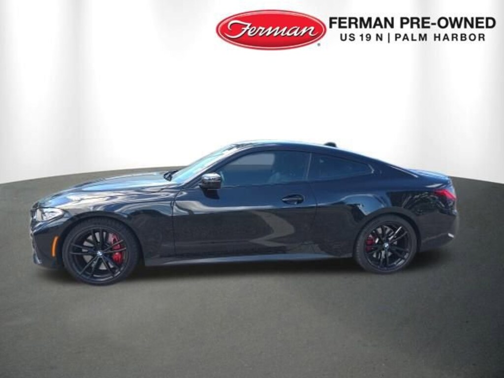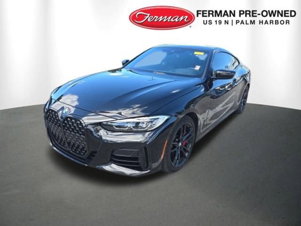 NAVIGATION*, SUNROOF*, BACK UP CAMERA*, SHADOWLINE PACKAGE, M-SPORT BRAKES WITH RED CALIPERS, HEAD UP DISPLAY, DUAL ZONE CLIMATE CONTROL, WIRELESS CHARGING, COMFORT ACCESS, 4 Series M440i xDrive, 2D Coupe, 3.0L I6, 8-Speed Automatic Sport, AWD, Black Sapphire Metallic, Black Leather, 10 Speakers, 4-Wheel Disc Brakes, ABS brakes, Adaptive M Suspension, AM/FM radio: SiriusXM with 360L, Ambient Lighting, Auto High-beam Headlights, Automatic temperature control, Black Mirror Caps, Brake assist, Compass, Connected Package Pro, Cooling & High Performance Tire Package, Delay-off headlights, Dual front impact airbags, Dual front side impact airbags, Electronic Stability Control, Emergency communication system: BMW Assist eCall, Enhanced USB & Bluetooth, Extended Shadowline Trim, Exterior Parking Camera Rear, Four wheel independent suspension, Front anti-roll bar, Front Bucket Seats, Front dual zone A/C, Front reading lights, Fully automatic headlights, Garage door transmitter, Head-Up Display, Heated Front Seats, Heated Steering Wheel, Illuminated entry, Increased Top Speed Limiter, Knee airbag, Low tire pressure warning, M Sport Brakes w/Red Calipers, M Technology Package, Memory seat, Mobility Kit, Navigation System, Occupant sensing airbag, Outside temperature display, Overhead airbag, Overhead console, Panic alarm, Power moonroof, Radio data system, Rain sensing wipers, Rear air conditioning, Rear anti-roll bar, Remote keyless entry, Security system, Shadowline Package, Speed control, Speed-sensing steering, Speed-Sensitive Wipers, Spoiler, Steering wheel mounted audio controls, Tachometer, Telescoping steering wheel, Tilt steering wheel, Traction control, Trip computer, Variably intermittent wipers, Wheels: 19 x 8 Fr & 19 x 8.5 Rr Jet Black, WiFi Hotspot, Wireless Charging.