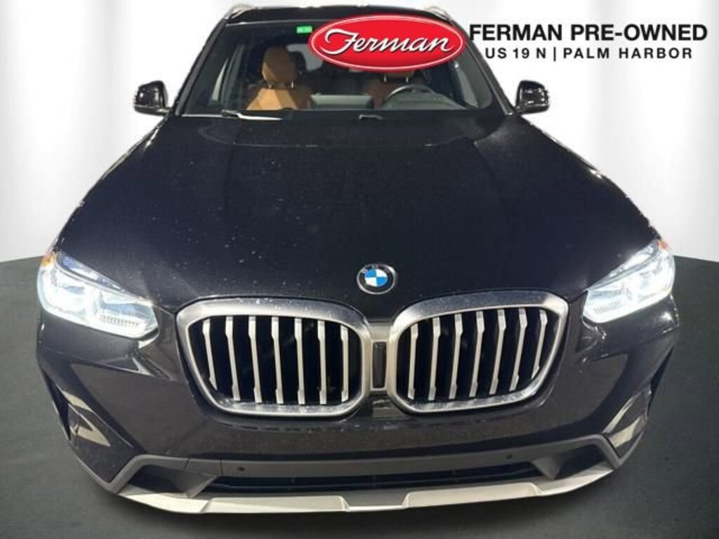 NAVIGATION*, PANORAMIC SUNROOF*, PREMIUM PACKAGE*, BLIND SPOT MONITOR*, LANE DEPARTURE WARNING*, 19ALLOY WHEELS, GALVANIC CONTROLS, AMBIENT LIGHTING, X3 sDrive30i, 4D Sport Utility, 2.0L I4 TwinPower Turbo, 8-Speed Automatic Sport, RWD, Black Sapphire Metallic, Cognac Artificial Leather, 12 Speakers, 4-Wheel Disc Brakes, ABS brakes, AM/FM radio: SiriusXM, Apple CarPlay & Android Auto Compatibility, Auto High-beam Headlights, Automatic temperature control, Brake assist, Comfort Access Keyless Entry, Connected Package Pro, Delay-off headlights, Driver Lumbar Support, Dual front impact airbags, Dual front side impact airbags, Electronic Stability Control, Emergency communication system: BMW Assist eCall, Exterior Parking Camera Rear, Four wheel independent suspension, Front anti-roll bar, Front Bucket Seats, Front dual zone A/C, Fully automatic headlights, Garage door transmitter, Genuine wood dashboard insert, Genuine wood door panel insert, Heated Front Seats, Heated Steering Wheel, Hi-Fi Sound System, Knee airbag, Live Cockpit Pro w/Navigation, Low tire pressure warning, Memory seat, Navigation, Occupant sensing airbag, Overhead airbag, Overhead console, Panic alarm, Panoramic Moonroof (ZPA), Perforated SensaTec Upholstery, Power Front Seats, Power Liftgate, Premium Package w/ZPA, Radio data system, Rain sensing wipers, Rear air conditioning, Rear anti-roll bar, Rear window wiper, Remote keyless entry, Security system, Speed control, Speed-sensing steering, Spoiler, Steering wheel mounted audio controls, Tachometer, Telescoping steering wheel, Tilt steering wheel, Traction control, Trip computer, Wheels: 19 x 7.5 Y-Spoke Ferric Grey (Style 693).