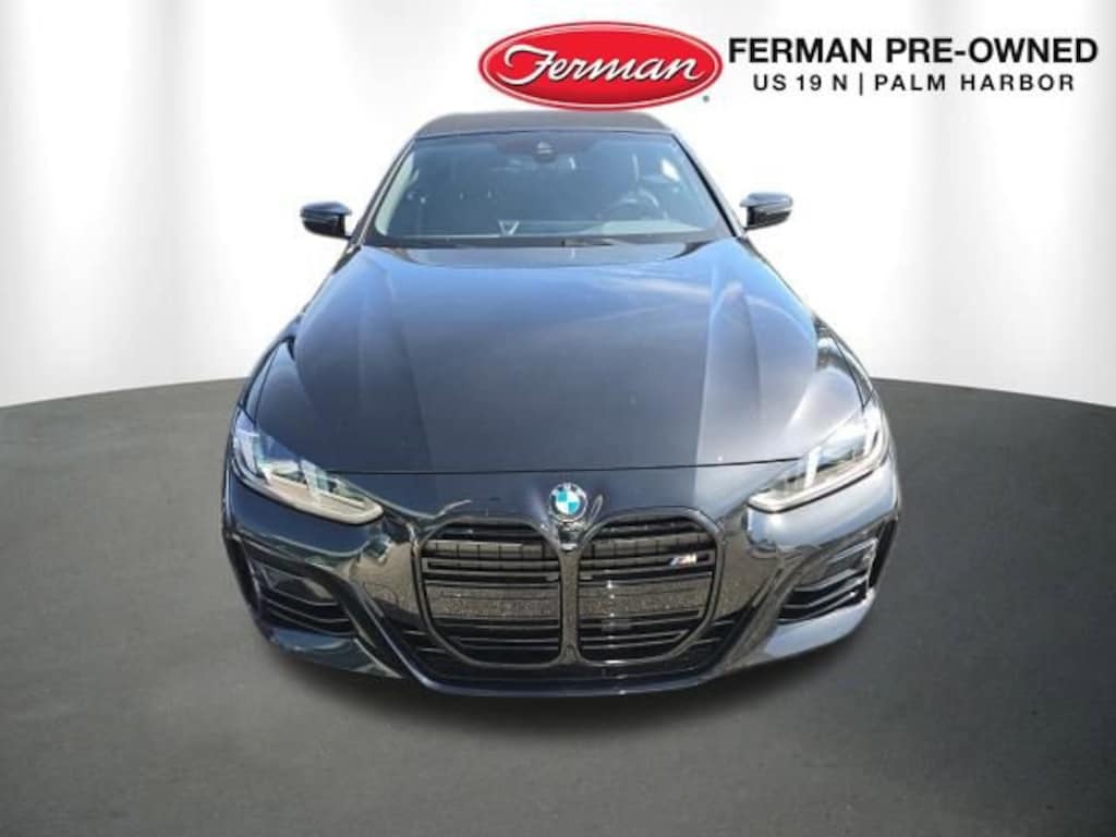 NAVIGATION*, SUNROOF*, BACK UP CAMERA*, HEATED SEATS*, BLIND SPOT MONITOR*, LANE DEPARTURE WARNING*, 4 Series M440i, 2D Convertible, 3.0L I6, 8-Speed Automatic Sport, RWD, Black Sapphire Metallic, Black Premium Synthetic, 10 Speakers, 4-Wheel Disc Brakes, ABS brakes, AM/FM radio: SiriusXM with 360L, Auto High-beam Headlights, Automatic temperature control, Brake assist, Compass, Connected Package Pro, Delay-off headlights, Dual front impact airbags, Dual front side impact airbags, Electronic Stability Control, Emergency communication system: BMW Assist eCall, Exterior Parking Camera Rear, Four wheel independent suspension, Front anti-roll bar, Front Bucket Seats, Front dual zone A/C, Fully automatic headlights, Heated Front Seats, Heated steering wheel, Hi-Fi Sound System, HVAC memory, Illuminated entry, Integrated roll-over protection, Knee airbag, Leather steering wheel, Low tire pressure warning, Memory seat, Navigation System, Occupant sensing airbag, Panic alarm, Rain sensing wipers, Rear anti-roll bar, Remote keyless entry, Security system, Speed control, Speed-sensing steering, Speed-Sensitive Wipers, Steering wheel mounted audio controls, Tachometer, Telescoping steering wheel, Tilt steering wheel, Traction control, Wheels: 19 x 8 Fr & 19 x 8.5 Rr M Bicolor, Widescreen Display.