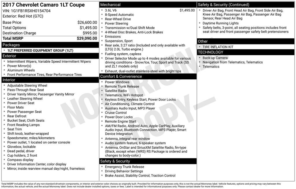 The 2017 Chevrolet Camaro 1LT is a thrilling and dynamic sports car that offers an unparalleled driving experience. With its sleek, muscular design and impressive performance capabilities, this Camaro is the perfect choice for the discerning driver who demands both style and substance.