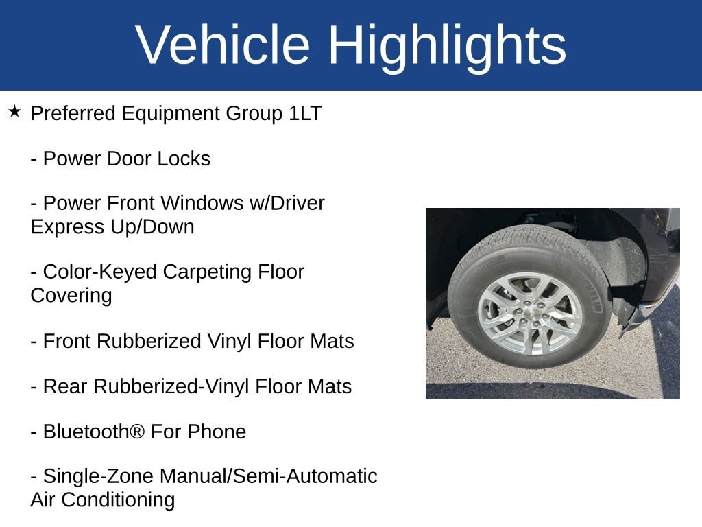 Silverado 1500 LT, 4D Crew Cab, EcoTec3 5.3L V8, 8-Speed Automatic, RWD, Black, Black Cloth, 10-Way Power Driver Seat w/Lumbar, 12-Volt Rear Auxiliary Power Outlet, 2 USB Ports (First Row), 4-Way Manual Driver Seat Adjuster, 4.2 Diagonal Color Display Driver Info Center, 40/20/40 Front Split-Bench Seat, All-Star Edition, Alloy wheels, Bluetooth® For Phone, Chevrolet Connected Access, Chevrolet w/4G LTE, Chrome Grille, Chrome Mirror Caps, Color-Keyed Carpeting Floor Covering, Compass, Convenience Package, Deep-Tinted Glass, Dual-Zone Automatic Climate Control, Electric Rear-Window Defogger, Electrical Lock Control Steering Column, Electronic Cruise Control, EZ Lift Power Lock & Release Tailgate, Front Rubberized Vinyl Floor Mats, Heated Driver & Front Passenger Seats, Heated Steering Wheel, Heavy-Duty Rear Locking Differential, Hitch Guidance, Keyless Open & Start, Leather Wrapped Steering Wheel, LED Cargo Area Lighting, Locking Tailgate, Manual Tilt Wheel Steering Column, Manual Tilt/Telescoping Steering Column, OnStar & Chevrolet Connected Services Capable, Power Door Locks, Power Front Windows w/Driver Express Up/Down, Power Front Windows w/Passenger Express Down, Power Rear Windows w/Express Down, Preferred Equipment Group 1LT, Rear 60/40 Folding Bench Seat (Folds Up), Rear Dual USB Charging-Only Ports, Rear Rubberized-Vinyl Floor Mats, Rear Vision Camera, Remote Keyless Entry, Remote Vehicle Starter System, Single-Zone Manual/Semi-Automatic Air Conditioning, Steering Wheel Audio Controls, Theft Deterrent System (Unauthorized Entry), Trailering Package, Urethane Steering Wheel.