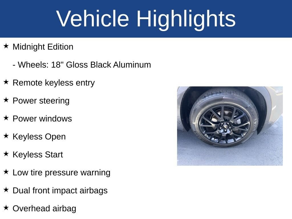 - Wheels: 18" Gloss Black Aluminum