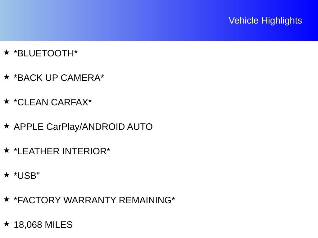 Ferman Price may include Ferman dealer savings available and any manufacturer rebates and incentives that may apply, but excludes any dealer-installed or added options, equipment and accessories. See dealer for a list of these items and complete details. Vehicle prices listed are plus tax, tag and title. Dealer also charges a pre-delivery service fee in the amount of $1,199.95 which charge represents cost And profit to the dealer for items such as cleaning, inspecting and adjusting new and used vehicles, and preparing documents related to the sale, or lease; dealer also charges a private tag agency fee in the amount of $99.95 which charge represents a fee paid to a private tag agency for the preparation of title work and also includes profit to the dealer related to the sale, or lease.