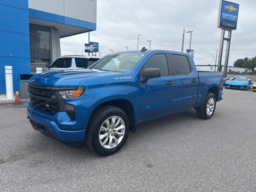 2023 Chevrolet Silverado 1500 Custom 8-Speed Automatic, Black Cloth, 10-Way Power Driver Seat w/Lumbar, 120-Volt Bed Mounted Power Outlet, 120-Volt Instrument Panel Power Outlet, 3.42 Rear Axle Ratio, 3.5 Monochromatic Display Driver Info Center, 4-Wheel Disc Brakes, 40/20/40 Front Split-Bench Seat, 6 Speakers, 6-Speaker Audio System, ABS brakes, Air Conditioning, Alloy wheels, AM/FM radio: SiriusXM, Apple CarPlay/Android Auto, Auto High-beam Headlights, Automatic Emergency Braking, Black Name Plates (LPO), Black Tailgate CHEVROLET Lettering (LPO), Bluetooth® For Phone, Brake assist, Bumpers: body-color, Chevrolet Connected Access Capable, Chevytec Spray-On Black Bedliner, Cloth Seat Trim, Color-Keyed Carpeting Floor Covering, Compass, Custom Convenience Package, Custom Value Package, Dark Essentials Package (LPO), Deep-Tinted Glass, Delay-off headlights, Driver door bin, Driver vanity mirror, Dual front impact airbags, Dual front side impact airbags, Dual Rear USB Ports (Charge Only), Electric Rear-Window Defogger, Electrical Steering Column Lock, Electronic Cruise Control, Electronic Stability Control, EZ Lift Power Lock & Release Tailgate, Following Distance Indicator, Forward Collision Alert, Front anti-roll bar, Front Black Bowtie Emblem (LPO), Front Center Armrest w/Storage, Front Frame-Mounted Black Recovery Hooks, Front Pedestrian Braking, Front reading lights, Front Rubberized Vinyl Floor Mats, Front wheel independent suspension, Fully automatic headlights, HD Rear Vision Camera, Heated door mirrors, High Capacity Suspension Package, Hitch Guidance, Illuminated entry, IntelliBeam Automatic High Beam On/Off, Lane Keep Assist w/Lane Departure Warning, LED Cargo Area Lighting, Low tire pressure warning, Manual Tilt Wheel Steering Column, Not Equipped w/Rear USB Ports, Not Equipped w/Steering Column Lock, Occupant sensing airbag, OnStar & Chevrolet Connected Services Capable, Outside temperature display, Overhead airbag, Overhead console, Panic alarm, Passenger door bin, Passenger vanity mirror, Power door mirrors, Power driver seat, Power Front Windows w/Driver Express Up/Down, Power Front Windows w/Passenger Express Down, Power Rear Windows w/Express Down, Power steering, Power windows, Preferred Equipment Group 1CX, Premium audio system: Chevrolet Infotainment 3, Radio data system, Radio: Chevrolet Infotainment 3 System, Rear 60/40 Folding Bench Seat (Folds Up), Rear reading lights, Rear Rubberized-Vinyl Floor Mats, Rear step bumper, Rear window defroster, Remote Keyless Entry, Remote keyless entry, Remote Vehicle Starter System, Security system, SiriusXM Radio, Speed control, Speed-sensing steering, Split folding rear seat, Standard Tailgate, Tachometer, Theft Deterrent System (Unauthorized Entry), Tilt steering wheel, Traction control, Trailering Package, Trip computer, Variably intermittent wipers, Voltmeter, Wheels: 20 x 9 Bright Silver Painted Aluminum, Wi-Fi Hot Spot Capable, Wireless Phone Projection, 8-Speed Automatic, Black Cloth. 19/22 City/Highway MPG Recent Arrival!