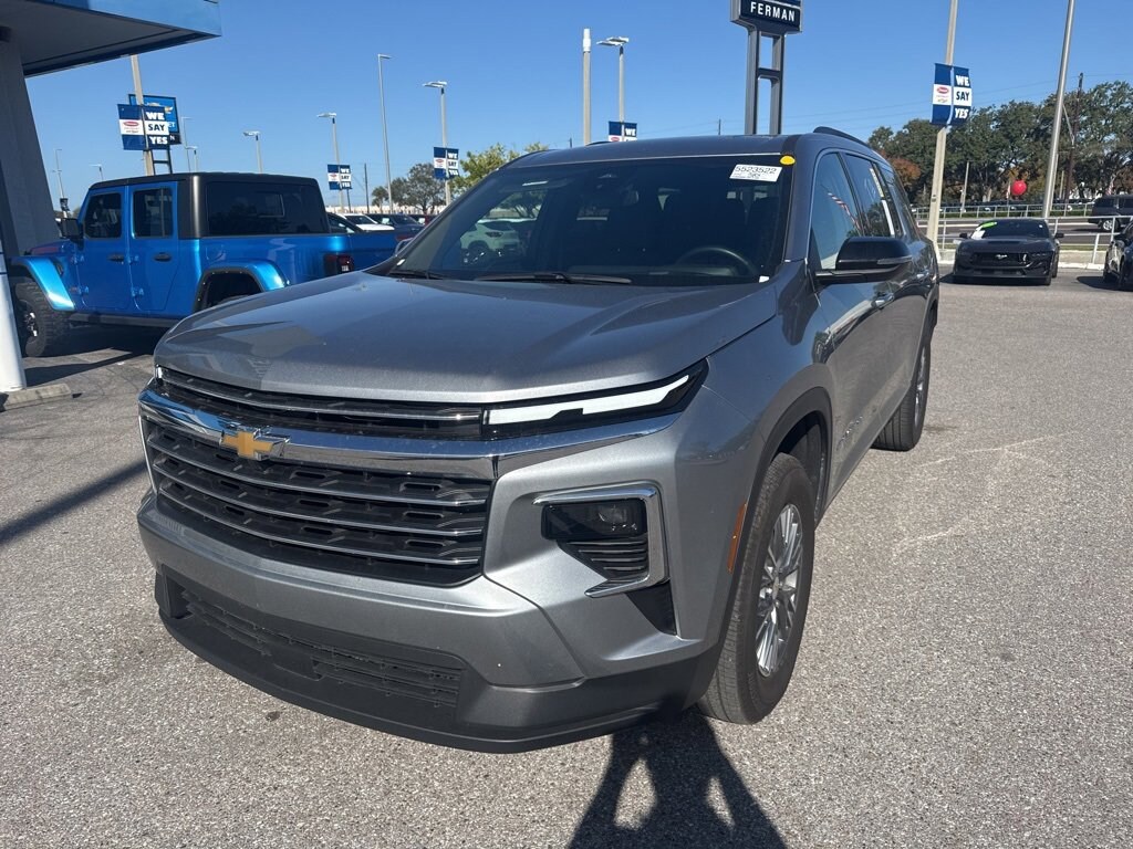 2025 Chevrolet Traverse LT 1LT 3rd row seats: split-bench, 4-Way Manual Front Passenger Seat Adjuster, 4-Wheel Disc Brakes, 6 Speakers, 6-Speaker Audio System Feature, 8-Way Power Driver Seat Adjuster, ABS brakes, Air Conditioning, Alloy wheels, AM/FM radio: SiriusXM with 360L, Apple CarPlay/Android Auto, Auto High-beam Headlights, Automatic temperature control, Brake assist, Bumpers: body-color, Child-Seat-Sensing Airbag, Compass, Delay-off headlights, Driver door bin, Driver vanity mirror, Dual front impact airbags, Dual front side impact airbags, Electronic Stability Control, Emergency communication system: OnStar, Four wheel independent suspension, Front anti-roll bar, Front Bucket Seats, Front Center Armrest, Front dual zone A/C, Front reading lights, Fully automatic headlights, Heated door mirrors, Heated front seats, Heated steering wheel, Illuminated entry, Low tire pressure warning, Navigation System, Occupant sensing airbag, Outside temperature display, Overhead airbag, Overhead console, Panic alarm, Passenger door bin, Passenger vanity mirror, Power door mirrors, Power driver seat, Power Liftgate, Power steering, Power windows, Preferred Equipment Group 1LT, Premium Cloth Seat Trim, Radio data system, Radio: : Audio System w/17.7 Diagonal Display, Rear air conditioning, Rear anti-roll bar, Rear reading lights, Rear window defroster, Rear window wiper, Remote keyless entry, Security system, SiriusXM with 360L Trial Subscription, Speed control, Speed-sensing steering, Spoiler, Steering wheel mounted audio controls, Tachometer, Telescoping steering wheel, Tilt steering wheel, Traction control, Trip computer, Turn signal indicator mirrors, Variably intermittent wipers, Voltmeter, Wheels: 18 Grazen Metallic Machined-Face Aluminum. 1LT 20/27 City/Highway MPG Recent Arrival!