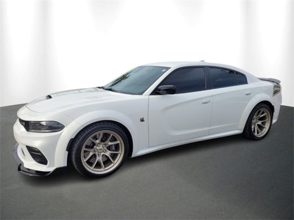 2023 Dodge Charger R/T Scat Pack Widebody Black w/Houndstooth Cloth Sport Seat, 1-Yr SiriusXM Guardian Trial, 2-Piece Shark Fin Antenna, 4-Wheel Disc Brakes, 4G LTE Wi-Fi Hot Spot, 5-Year SiriusXM Traffic Service, 5-Year SiriusXM Travel Link Service, 6 Speakers, 8.4 Touchscreen Display, ABS brakes, Adaptive Cruise Control w/Stop, Adaptive Damping Suspension (DISC), Advanced Brake Assist, Air Conditioning, All Speed Traction Control, Alloy wheels, Aluminum Interior Bezel w/Wood Look, AM/FM radio: SiriusXM, Anti-whiplash front head restraints, Apple CarPlay, Apple CarPlay/Android Auto, Auto Adjust In Reverse Exterior Mirrors, Auto High Beam Headlamp Control, Auto-Dimming Exterior Driver Mirror, Auto-dimming Rear-View mirror, Automatic temperature control, Basil Green IP/Console/Door Stitching, Black-Edged Premium Floormats, Blind Spot & Cross Path Detection, Blind Spot Memory/Power/Heat Mirror, Body Color Fender Flares, Brake assist, Brembo 6-Pot Fixed Front Caliper Brakes, Bumpers: body-color, Cloth Performance Seats w/Heat, Compass, Compass Gauge, Delay-off headlights, Driver & Passenger Lower LED Lamps, Driver door bin, Driver vanity mirror, Dual front impact airbags, Dual front side impact airbags, Electronic Stability Control, Emergency communication system: SiriusXM Guardian, Exterior Mirrors Courtesy Lamps, Exterior Mirrors w/Heating Element, Flat-Bottom Steering Wheel, For Details, Visit DriveUconnect.com, Four wheel independent suspension, Front anti-roll bar, Front Bucket Seats, Front Center Armrest, Front dual zone A/C, Front fog lights, Front Overhead LED Lighting, Front reading lights, Full Speed FWD Collision Warn Plus, Fully automatic headlights, Garage door transmitter: HomeLink, Gold School Bee Fender Badge, Gold School Scat Pack/Bee Decklid Badge, Gold School Scat Pack/Bee Grille Badge, Google Android Auto, GPS Antenna Input, GPS Navigation, HD Radio, Heated door mirrors, Heated Front Seats, Heated front seats, Heated steering wheel, Illuminated entry, Integrated Center Stack Radio, Integrated Voice Command w/Bluetooth, Knee airbag, Lane Departure Warning Plus, Leather Shift Knob, Low tire pressure warning, Media Hub (2 USB, AUX), Nappa Alcantara Seat Trim w/Green Stitch, Navigation & Travel Group, Occupant sensing airbag, Outside temperature display, Overhead airbag, Overhead console, Panic alarm, ParkView Rear Back-Up Camera, Passenger door bin, Passenger vanity mirror, Performance Shift Indicator, Plus Group, Power 2-Way Driver Lumbar Adjust, Power 2-Way Passenger Lumbar Adjust, Power door mirrors, Power driver seat, Power Front Driver/Passenger Seats, Power steering, Power Tilt/Telescope Steering Column, Power windows, Premium-Stitched Dash Panel, Quick Order Package 21V Scat Pack Widebody, Radio: Uconnect 4C Nav w/8.4 Display, Radio: Uconnect 4C w/8.4 Display, Radio/Driver Seat/Mirrors Memory, Rain Sensitive Windshield Wipers, Rear anti-roll bar, Rear Armrest w/Cupholder Seat, Rear reading lights, Rear seat center armrest, Rear window defroster, Remote keyless entry, Rhombi 2-Pc Wheel Center Cap, Satin Black Dodge Tail Lamp Badge, Scat Pack Logo Nappa/Alcantara Seat, Security system, SiriusXM Traffic Plus, SiriusXM Travel Link, Speed control, Speed-Sensitive Wipers, Split folding rear seat, Spoiler, Sport steering wheel, Steering wheel mounted audio controls, Swinger Exterior Vinyl Graphics, Swinger Special Edition, Tachometer, Technology Group, Telescoping steering wheel, Tilt steering wheel, Traction control, Trip computer, Unique IP Badge, USB Host Flip, Variably intermittent wipers, Ventilated Front Seats, Wheels: 20 x 11.0 Gold School, Wheels: 20 x 11 Carbon Black Aluminum, Wheels: 20 x 9 Lo Gloss Granite Crystal, Widebody Competition Suspension, Widebody Package, Black w/Houndstooth Cloth Sport Seat. 15/24 City/Highway MPG