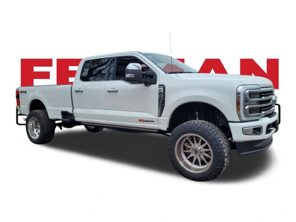 - THE 2024 FORD F-350 LIMITED IS A PREMIUM HEAVY-DUTY TRUCK THAT COMBINES EXTREME TOWING CAPABILITIES WITH LUXURY FEATURES AND TECHNOLOGY MAKING IT A TOP CHOICE FOR DRIVERS WHO DEMAND BOTH PERFORMANCE AND REFINEMENT. THIS HIGH-END MODEL IN FORDS SUPER DUTY LINEUP IS BUILT TO HANDLE THE TOUGHEST JOBS WHILE OFFERING A FIRST-CLASS EXPERIENCE FOR BOTH DRIVER AND PASSENGERS. ON THE OUTSIDE THE F-350 LIMITED FEATURES A BOLD AND SOPHISTICATED DESIGN WITH EXCLUSIVE CHROME ACCENTS DISTINCTIVE GRILLE STYLING AND 20-INCH POLISHED ALUMINUM WHEELS THAT GIVE IT A COMMANDING ROAD PRESENCE. SIGNATURE LED LIGHTING AND POWER-DEPLOYABLE RUNNING BOARDS ADD TO ITS ELEVATED STYLE AND FUNCTIONALITY MAKING IT EASY TO ENTER AND EXIT WHILE ADDING A TOUCH OF ELEGANCE. THE INTERIOR OF THE F-350 LIMITED IS LUXURIOUS WITH PREMIUM LEATHER SEATING WOOD AND ALUMINUM ACCENTS AND HEATED AND VENTILATED SEATS FOR MAXIMUM COMFORT. IT COMES EQUIPPED WITH FORD'S LATEST SYNC INFOTAINMENT SYSTEM ON A LARGE TOUCHSCREEN DISPLAY PROVIDING SEAMLESS CONNECTIVITY NAVIGATION AND SMARTPHONE INTEGRATION. PASSENGERS WILL ENJOY ADVANCED FEATURES LIKE A PREMIUM B&O SOUND SYSTEM AND AMPLE LEGROOM MAKING LONG DRIVES A RELAXING EXPERIENCE. UNDER THE HOOD THE F-350 LIMITED OFFERS POWERFUL ENGINE OPTIONS INCLUDING A 6.7L POWER STROKE TURBO DIESEL V8 CAPABLE OF DELIVERING HIGH TORQUE AND IMPRESSIVE HORSEPOWER FOR UNMATCHED TOWING CAPACITY AND PERFORMANCE. ADVANCED DRIVER-ASSISTANCE FEATURES SUCH AS ADAPTIVE CRUISE CONTROL LANE-KEEP ASSIST AND 360-DEGREE CAMERA SYSTEMS MAKE IT EASIER AND SAFER TO NAVIGATE EVEN WITH HEAVY LOADS. WITH ITS ROBUST TOWING CAPACITY LUXURIOUS CABIN AND CUTTING-EDGE TECHNOLOGY THE 2024 FORD F-350 LIMITED IS BUILT FOR THOSE WHO EXPECT BOTH POWER AND SOPHISTICATION IN A HEAVY-DUTY TRUCK MAKING IT A STANDOUT CHOICE FOR DEMANDING WORK AND UPSCALE ADVENTURES ALIKE.