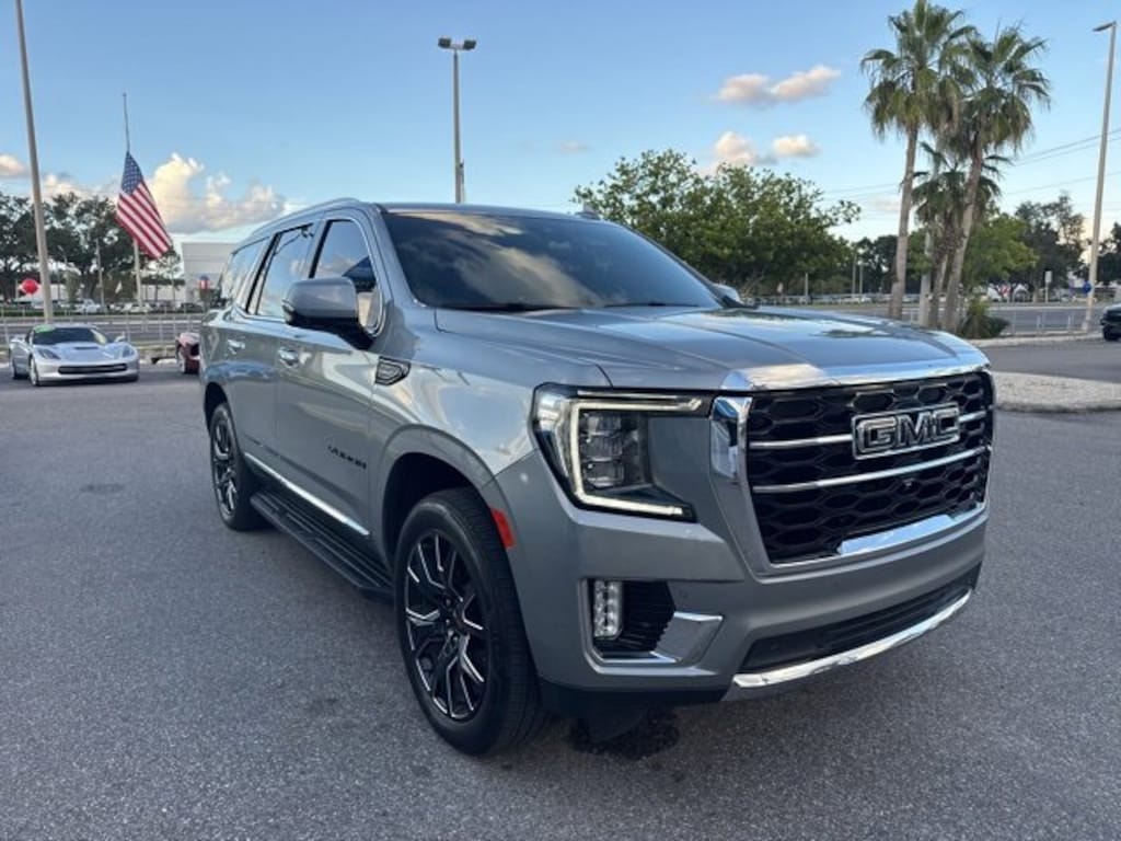 2024 GMC Yukon SLT Odometer is 17865 miles below market average! 4WD, 12-Way Power Seat Adjusters, 2 Presets For Outside Rearview Mirrors, 2 Presets For Power Driver Seat, 3.23 Rear Axle Ratio, 3rd Row 60/40 Power-Folding Split-Bench Seat, 3rd row seats: split-bench, 4-Wheel Disc Brakes, 9 Speakers, ABS brakes, Adaptive Cruise Control, Air Conditioning, Alloy wheels, AM/FM radio: SiriusXM with 360L, AM/FM Stereo, Apple CarPlay/Android Auto, Auto High-beam Headlights, Auto-dimming Rear-View mirror, Automatic Emergency Braking, Automatic temperature control, Black Grille w/Chrome Surround (LPO), Black Nameplates (LPO), Bodyside moldings, Bose 9-Speaker Stereo Audio System Feature, Brake assist, Bright Chrome Bodyside Moldings, Bright Front & Rear Door Sill Plates, Bumpers: body-color, Chrome Door Handles w/Body-Color Strip, Compass, Delay-off headlights, Driver door bin, Driver vanity mirror, Dual front impact airbags, Dual front side impact airbags, Electronic Stability Control, Emergency communication system: OnStar and GMC connected services capable, Enhanced Automatic Emergency Braking, Extra Capacity Cooling System, Floor Console, Following Distance Indicator, Forward Collision Alert, Four wheel independent suspension, Front & Rear Park Assist, Front anti-roll bar, Front Bucket Seats, Front Center Armrest, Front dual zone A/C, Front fog lights, Front Pedestrian Braking, Front reading lights, Fully automatic headlights, Garage door transmitter, Hands-Free Power Programmable Rear Liftgate, HD Surround Vision, Heated 2nd Row Outboard Position Seats, Heated door mirrors, Heated Driver & Front Passenger Seats, Heated front seats, Heated Steering Wheel, Hitch View, Illuminated entry, Inside Rear-View Auto-Dimming Mirror, Integrated Trailer Brake Controller, IntelliBeam Automatic High Beam On/Off, Lane Change Alert w/Side Blind Zone Alert, Lane Keep Assist w/Lane Departure Warning, Low tire pressure warning, Max Trailering Package, Memory seat, Navigation System, Occupant sensing airbag, Outside Heated Power-Adjustable Mirrors, Outside temperature display, Overhead airbag, Overhead console, Panic alarm, Passenger door bin, Passenger vanity mirror, Perforated Heated & Ventilated Dr & Frt Pass Seats, Perforated Leather-Appointed Seating, Power door mirrors, Power driver seat, Power Liftgate, Power passenger seat, Power Release 2nd Row 60/40 Split-Folding Bench Seat, Power Release 2nd Row Bucket Seats, Power steering, Power Tilt & Telescopic Steering Column, Power windows, Preferred Equipment Group 4SA, Premium Smooth Ride Suspension, Rain sensing wipers, Rear air conditioning, Rear anti-roll bar, Rear Cross Traffic Alert, Rear Pedestrian Alert, Rear reading lights, Rear seat center armrest, Rear Seat Media System, Rear window defroster, Rear window wiper, Remote keyless entry, Roof rack: rails only, Safety Alert Seat, Security system, SiriusXM w/360L, SLT Luxury Package, Smart Trailer Integration Indicator, Speed control, Speed-sensing steering, Split folding rear seat, Spoiler, Steering wheel mounted audio controls, Tachometer, Telescoping steering wheel, Tilt steering wheel, Traction control, Trailer Side Blind Zone Alert, Trailer Tire Pressure Monitor Sensors, Trip computer, Universal Home Remote, Variably intermittent wipers, Ventilated front seats, Voltmeter, Wheel Locks (Set of 4) (LPO), Wheels: 20 x 9 6-Spoke Polished Aluminum, Wheels: 22 x 9 6-Spoke Carbon Flash Metallic Alum, Wireless Charging, 4WD. 15/20 City/Highway MPG Recent Arrival!