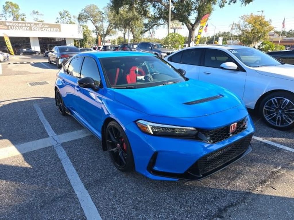 CARFAX 1-OWNER VEHICLE, LOCAL TRADE, The 2023 Honda Civic Type R (Base) is a high-performance hot hatch that refines its legendary status with more power, sharper dynamics, and modern technology all while delivering an exhilarating drivers-car experience. Under its hood, the Type R is powered by a 2.0-liter turbocharged four-cylinder VTEC engine, producing 315 horsepower at 6,500 rpm and 310 lb-ft of torque between 2,600 and 4,000 rpm. Honda Info Center +2 Motor1.com +2 This boost over the prior generation comes from a redesigned turbocharger, improved intake airflow, and a straight-through exhaust with an active valve that enhances both performance and sound. Cars.com +2 MotorTrend +2 Power is sent exclusively to the front wheels via a six-speed manual transmission that features rev-match control, helping smooth out downshifts. Honda Info Center Complementing this is a helical limited-slip differential, which helps maximize grip and control under hard acceleration and cornering. Honda Info Center The suspension and chassis have been comprehensively tuned for performance: the car uses adaptive dampers, a dual-axis MacPherson-strut front setup, and a multi-link rear suspension. Honda Info Center Braking is handled by Brembo 4-piston aluminum front calipers, giving excellent stopping power under spirited driving. Honda Info Center To provide versatility for different driving styles, the Type R features a 4-mode drive system Comfort, Sport, Individual, and +R letting drivers tailor throttle response, steering feel, and suspension firmness to the conditions. Honda Info Center Its exterior design blends aggressive performance cues with a more refined and mature aesthetic. The front bumper has been reworked for increased cooling, while the rear features a diffuser and three-round exhaust tips. Automoblog The car rides on 19-inch matte-black alloy wheels wrapped in Michelin Pilot Sport 4S tires, giving both grip and visual aggression. Cars.com Inside, the cabin is driver-focused but also livable. Sporty heavily bolstered front seats in suede-like upholstery hold you in place during fast cornering. Automoblog The digital instrument cluster is 10.2 inches wide, combining key performance data (like rpm, gear, and lap info) into a clean, customizable layout. Cars.com For performance enthusiasts, the Honda LogR Performance Datalogger is built into the car tracking and analyzing your inputs (like throttle, braking, steering) for performance driving or track sessions. Capital One On the tech and convenience front, the Type R comes with a 9-inch touchscreen infotainment system with wireless Apple CarPlay and Android Auto, plus a premium 12-speaker Bose sound system. Cars.com Wireless charging is also a standard feature. Cars.com Safety-wise, Honda includes its Honda Sensing suite, which offers features such as forward-collision warning, automatic emergency braking, lane-keeping assist, adaptive cruise control, blind-spot monitoring, rear cross-traffic alert, and other advanced driver-assist technologies. Capital One Driving the 2023 Civic Type R is an intense and rewarding experience. Reviewers praise its launch torque, excellent cornering, and gripping tires it's capable of sprinting from 0-60 mph in a reported ~5.0 seconds. Motor1.com The lighter flywheel, refined gearbox, and improved rev-matching make gear changes sharp and engaging, whether you're on the street or the track. MotorTrend +1.