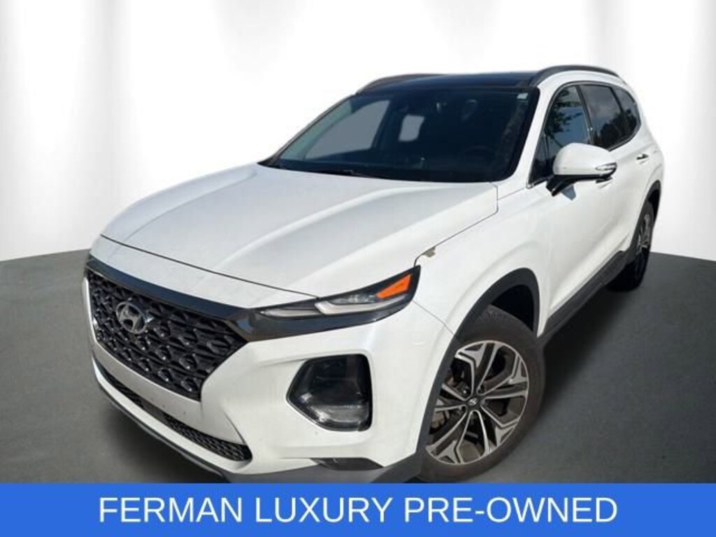 NAVIGATION*, SUNROOF*, BACK UP CAMERA*, CARFAX 1-OWNER VEHICLE, LOCAL TRADE, The 2020 Hyundai Santa Fe Limited is a midsize SUV that blends comfort, technology, safety, and refinement into a well-rounded package ideal for families and daily driving alike. As a top-trim model in the Santa Fe lineup, the Limited distinguishes itself with premium features, upscale interior materials, and a long list of standard equipment that rivals many luxury competitors at a more approachable price. On the outside, the Santa Fe Limited presents a bold yet mature design, with Hyundais signature cascading grille, sleek LED headlights and taillights, and a sculpted body that feels both athletic and refined. Chrome accents and larger alloy wheels enhance its presence on the road, while a hands-free smart liftgate with adjustable height adds convenience for loading cargo. Inside, the Limited cabin is spacious and thoughtfully laid out, emphasizing comfort and quality. Plush leather upholstery, heated and ventilated front seats, and a heated steering wheel ensure comfort in all seasons. The driver and front passenger enjoy power-adjustable seating with memory settings, and rear passengers benefit from ample legroom and climate controls that help everyone stay comfortable on long drives. The panoramic sunroof floods the interior with light, enhancing the airy and inviting atmosphere. Technology is another strength of the Santa Fe Limited. A large touchscreen infotainment system with Apple CarPlay and Android Auto comes standard, allowing seamless smartphone integration. Built-in navigation, a premium audio system, and multiple USB ports keep drivers connected and entertained. The digital instrument cluster and intuitive controls make day-to-day operation easy and user-friendly. Under the hood, the 2020 Santa Fe Limited typically pairs a smooth and capable V-6 engine with an automatic transmission, delivering confident acceleration and composed highway cruising. All-wheel drive is available, improving traction and stability in varied driving conditions. The ride quality strikes a pleasing balance between responsive handling and cushioned comfort, making it well-suited for both city commutes and weekend adventures. Safety is a priority, with an array of advanced driver-assist features standard or available. These include forward collision warning with automatic emergency braking, blind-spot monitoring, lane-keeping assist, adaptive cruise control, and rear cross-traffic alert all designed to enhance peace of mind on every journey. Overall, the 2020 Hyundai Santa Fe Limited offers a compelling mix of style, comfort, technology, and safety, making it a standout choice for buyers seeking a premium midsize SUV experience without stepping into the luxury price tier., Santa Fe Limited, 4D Sport Utility, 2.0L Turbocharged, 8-Speed Automatic with SHIFTRONIC, FWD, Quartz White, Black Leather, 12 Speakers, AM/FM radio: SiriusXM, Heads-Up Display, Navigation System, Option Group 01, Power moonroof, Radio: Infinity Premium AM/FM/MP3 Display Audio.