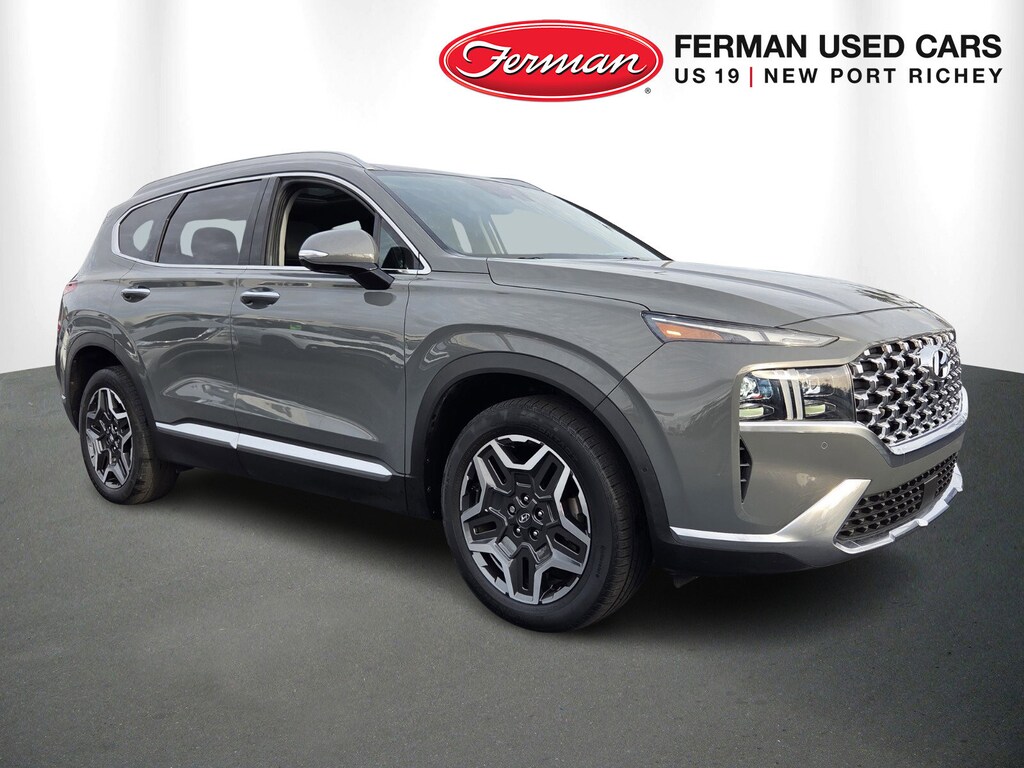 *ONE OWNER*, *APPLE CarPlay/ANDROID AUTO*, *BLIND SPOT MONITOR*, *BACK UP CAMERA*, *LANE DEPARTURE*, *USB/HANDS FREE/GPS BLUETOOTH*, Santa Fe Limited, 4D Sport Utility, 2.5L I4, Shiftronic, Hampton Gray, 12 Speakers, 4-Wheel Disc Brakes, ABS brakes, Air Conditioning, Alloy wheels, AM/FM radio: SiriusXM, Apple CarPlay & Android Auto, Auto High-beam Headlights, Auto-dimming Rear-View mirror, Automatic temperature control, Axle Ratio: 3.316, Brake assist, Bumper Applique, Bumpers: body-color, Cargo Cover/Screen, Cargo Net, Cargo Package, Cargo Tray, Carpeted Floor Mats, Delay-off headlights, Driver door bin, Driver vanity mirror, Dual front impact airbags, Dual front side impact airbags, Electronic Stability Control, Emergency communication system, Exterior Parking Camera Rear, First Aid Kit, Four wheel independent suspension, Front anti-roll bar, Front Bucket Seats, Front Center Armrest, Front dual zone A/C, Front reading lights, Fully automatic headlights, Garage door transmitter: HomeLink, harman/kardon® Speakers, Heated & Ventilated Front Bucket Seats, Heated door mirrors, Heated front seats, Heated rear seats, Heated steering wheel, Illuminated entry, Leather Seat Trim, Leather steering wheel, Low tire pressure warning, Memory seat, Mudguards, Navigation System, Occupant sensing airbag, Option Group 01, Outside temperature display, Overhead airbag, Overhead console, Panic alarm, Passenger door bin, Passenger vanity mirror, Power door mirrors, Power driver seat, Power Liftgate, Power moonroof, Power passenger seat, Power steering, Power windows, Radio: AM/FM Harman Kardon Display Audio, Rain sensing wipers, Rear anti-roll bar, Rear seat center armrest, Rear window defroster, Rear window wiper, Remote keyless entry, Security system, Speed control, Speed-sensing steering, Split folding rear seat, Spoiler, Steering wheel mounted audio controls, Tachometer, Telescoping steering wheel, Tilt steering wheel, Traction control, Trip computer, Turn signal indicator mirrors, Variably intermittent wipers, Ventilated front seats, Wheel Locks, Wheels: 19" x 7.5J Alloy, Santa Fe Limited, 4D Sport Utility, 2.5L I4, Shiftronic, Hampton Gray.