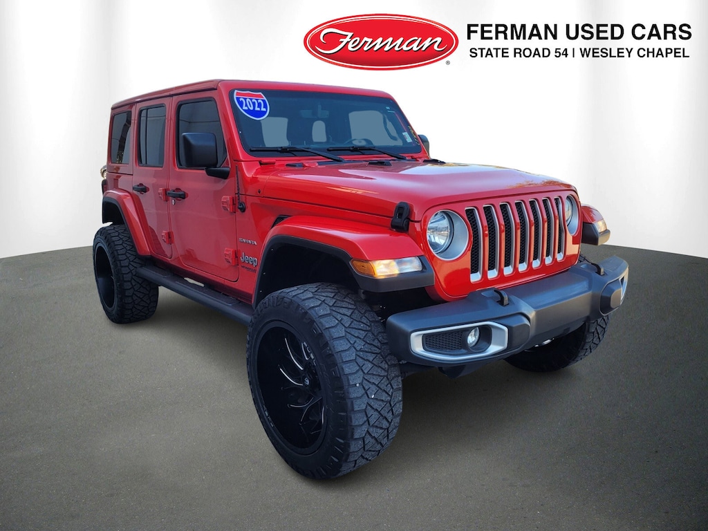 2022 Jeep Wrangler Unlimited Sahara Unlimited Sahara One Owner Clean Carfax Certified, Navigation System, Quick Order Package 22G, 110 MPH Vehicle Max Speed Calibration, 3.45 Rear Axle Ratio, 4-Wheel Disc Brakes, 9 Speakers, ABS brakes, Air Conditioning, Alloy wheels, AM/FM radio: SiriusXM, Apple CarPlay/Android Auto, Auto-dimming Rear-View mirror, Automatic temperature control, Aux Battery, Body Color 3-Piece Hard Top, Brake assist, Cloth Low-Back Bucket Seats, Compass, Delay-off headlights, Driver door bin, Driver vanity mirror, Dual front impact airbags, Dual front side impact airbags, Electronic Stability Control, Emergency communication system: SiriusXM Guardian, Engine Oil Cooler, Freedom Panel Storage Bag, Front anti-roll bar, Front Bucket Seats, Front Center Armrest w/Storage, Front dual zone A/C, Front fog lights, Front reading lights, Fully automatic headlights, Garage door transmitter, Heated door mirrors, Heavy Duty Suspension w/Gas Shocks, Illuminated entry, Integrated roll-over protection, Leather steering wheel, Low tire pressure warning, MOPAR All-Weather Floor Mats, MOPAR Hardtop Headliner, No Soft Top, Non-Lock Fuel Cap w/o Discriminator, Occupant sensing airbag, Outside temperature display, Panic alarm, ParkView Rear Back-Up Camera, Passenger door bin, Passenger vanity mirror, Power door mirrors, Power steering, Power windows, Radio data system, Radio: Uconnect 4C Nav w/8.4 Display, Rear anti-roll bar, Rear reading lights, Rear Window Defroster, Rear Window Wiper/Washer, Remote keyless entry, Security system, Speed control, Split folding rear seat, Steering wheel mounted audio controls, Stop-Start Dual Battery System, Tachometer, Telescoping steering wheel, Tilt steering wheel, Traction control, Trip computer, Variably intermittent wipers, Voltmeter, Wheels: 18 x 7.5 Polished w/Gray Spokes, Navigation System, Quick Order Package 22G.