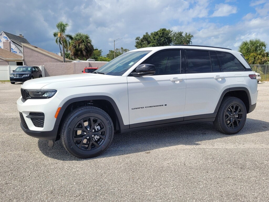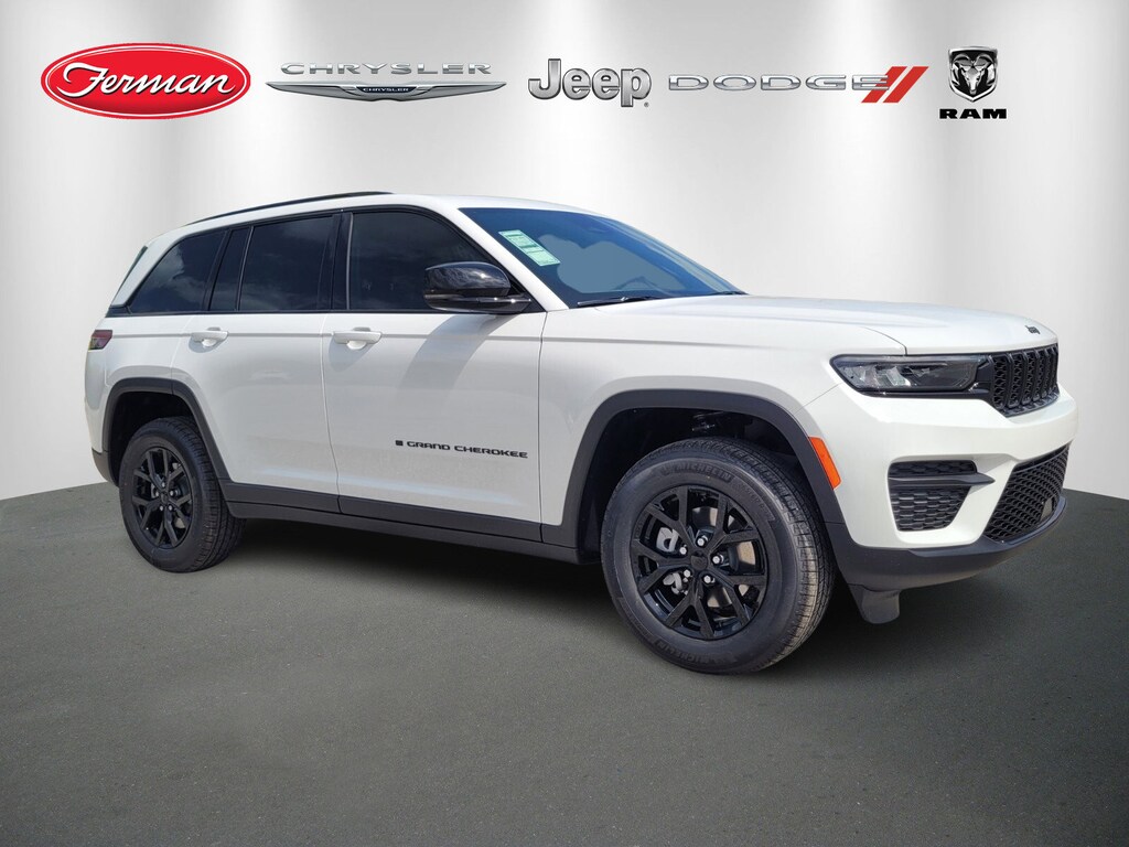 Bright White Clearcoat 2025 Grand Cherokee Altitude X RWD 8-Speed Automatic 3.6L V6 24V VVT 115V Auxiliary Power Outlet, 4-Wheel Disc Brakes, 6 Speakers, ABS brakes, Air Conditioning, Alloy wheels, Altitude X, AM/FM radio: SiriusXM, Anti-whiplash front head restraints, Automatic temperature control, Black Headliner, Brake assist, Bumpers: body-color, Capri Leatherette/Suede Seats, Cloth Seats, Compass, Delay-off headlights, Delete Laredo Badge, Driver door bin, Driver vanity mirror, Dual front impact airbags, Dual front side impact airbags, Electronic Stability Control, Emergency communication system, Four wheel independent suspension, Front anti-roll bar, Front Bucket Seats, Front Center Armrest w/Storage, Front dual zone A/C, Front reading lights, Fully automatic headlights, Gloss Black Exterior Accents, Heated door mirrors, Heated Front Seats, Heated Steering Wheel, Illuminated entry, Knee airbag, Low tire pressure warning, Model Year Tracking, Normal Duty Suspension, Occupant sensing airbag, Outside temperature display, Overhead airbag, Overhead console, Panic alarm, ParkView Rear Back-Up Camera, Passenger door bin, Passenger vanity mirror, Power door mirrors, Power driver seat, Power Liftgate, Power steering, Power Sunroof, Power windows, Quick Order Package 23M Altitude X, Radio data system, Radio: Uconnect 5 w/8.4" Display, Rain Sensitive Windshield Wipers, Rear anti-roll bar, Rear reading lights, Rear window defroster, Rear window wiper, Remote keyless entry, Remote Start System, Security system, Selectable Tire Fill Alert, Speed control, Speed-Sensitive Wipers, Split folding rear seat, Spoiler, Steering wheel mounted audio controls, Tachometer, Telescoping steering wheel, Tilt steering wheel, Traction control, Trip computer, Variably intermittent wipers, Voltmeter, Wheels: 17" x 6.5" Fully Painted Aluminum, Wheels: 18" x 8" Fully Painted Aluminum 1, Wireless Charging Pad.
