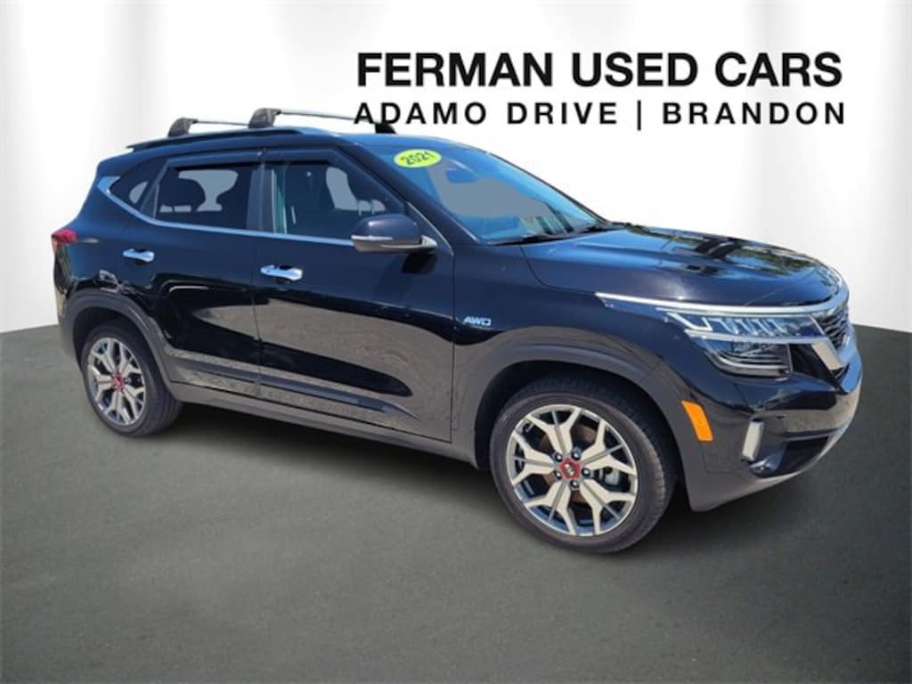 2021 Kia Seltos SX Odometer is 12414 miles below market average! 18 Alloy Wheels, 4-Wheel Disc Brakes, 4.643 Axle Ratio, 8 Speakers, ABS brakes, Air Conditioning, Alloy wheels, AM/FM radio: SiriusXM, Apple CarPlay & Android Auto, Auto-dimming Rear-View mirror, Automatic temperature control, Brake assist, Bumpers: body-color, Cargo Net (Floor), Carpeted Floor Mats, Cross Bars, Delay-off headlights, Driver door bin, Driver vanity mirror, Dual front impact airbags, Dual front side impact airbags, Electronic Stability Control, Emergency communication system, Exterior Parking Camera Rear, Four wheel independent suspension, Front anti-roll bar, Front Bucket Seats, Front Center Armrest, Front fog lights, Front reading lights, Fully automatic headlights, Heated door mirrors, Heated Front Bucket Seats, Heated front seats, Illuminated entry, Leather Seat Trim, Leather Shift Knob, Low tire pressure warning, Navigation System, Occupant sensing airbag, Outside temperature display, Overhead airbag, Overhead console, Panic alarm, Passenger door bin, Passenger vanity mirror, Power door mirrors, Power driver seat, Power steering, Power windows, Radio: AM/FM/MP3 Display Audio, Rear seat center armrest, Rear window defroster, Rear window wiper, Remote keyless entry, Security system, Smart Key w/ Push Button and Remote Start, Speed control, Speed-sensing steering, Split folding rear seat, Spoiler, Steering wheel mounted audio controls, Tachometer, Telescoping steering wheel, Tilt steering wheel, Traction control, Trip computer, Turn signal indicator mirrors, Variably intermittent wipers. 25/30 City/Highway MPG