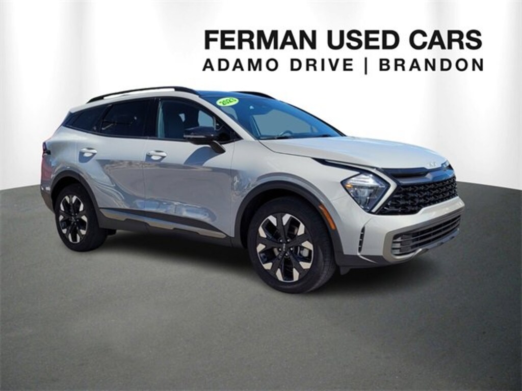 2023 Kia Sportage X-Line AWD, 4-Wheel Disc Brakes, 6 Speakers, ABS brakes, Air Conditioning, Alloy wheels, AM/FM radio: SiriusXM, Apple CarPlay & Android Auto, Auto High-beam Headlights, Automatic temperature control, Axle Ratio: 3.648, Brake assist, Bumpers: body-color, Carpet Floor Mats X-Line, Compass, Delay-off headlights, Driver door bin, Driver vanity mirror, Dual front impact airbags, Dual front side impact airbags, Electronic Stability Control, Emergency communication system, Four wheel independent suspension, Front anti-roll bar, Front Bucket Seats, Front Center Armrest, Front dual zone A/C, Fully automatic headlights, harman/kardon® Speakers, Heated door mirrors, Heated Front Bucket Seats, Heated front seats, Illuminated entry, Leather Shift Knob, Leather steering wheel, LED Interior Lighting, Low tire pressure warning, Navigation System, Occupant sensing airbag, Outside temperature display, Overhead airbag, Overhead console, Panic alarm, Panoramic Sunroof, Passenger door bin, Passenger vanity mirror, Power door mirrors, Power driver seat, Power steering, Power windows, Premium Leatherette Seat Trim, Radio: AM/FM/HD Audio System, Rain sensing wipers, Rear anti-roll bar, Rear seat center armrest, Rear window defroster, Rear window wiper, Remote keyless entry, Security system, Smart Power Liftgate, Speed control, Speed-sensing steering, Split folding rear seat, Spoiler, Steering wheel mounted audio controls, Tachometer, Telescoping steering wheel, Tilt steering wheel, Traction control, Trip computer, Turn signal indicator mirrors, Variably intermittent wipers, Wheels: 19 Gloss Black Alloy, X-Line Premium Package, AWD. 23/28 City/Highway MPG