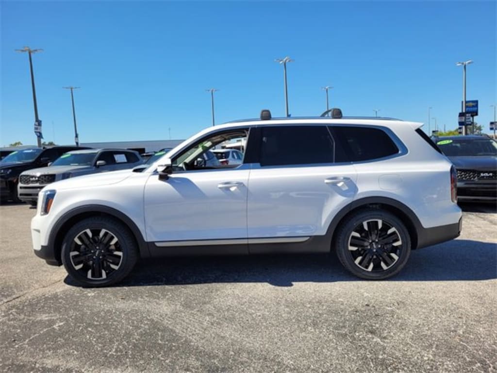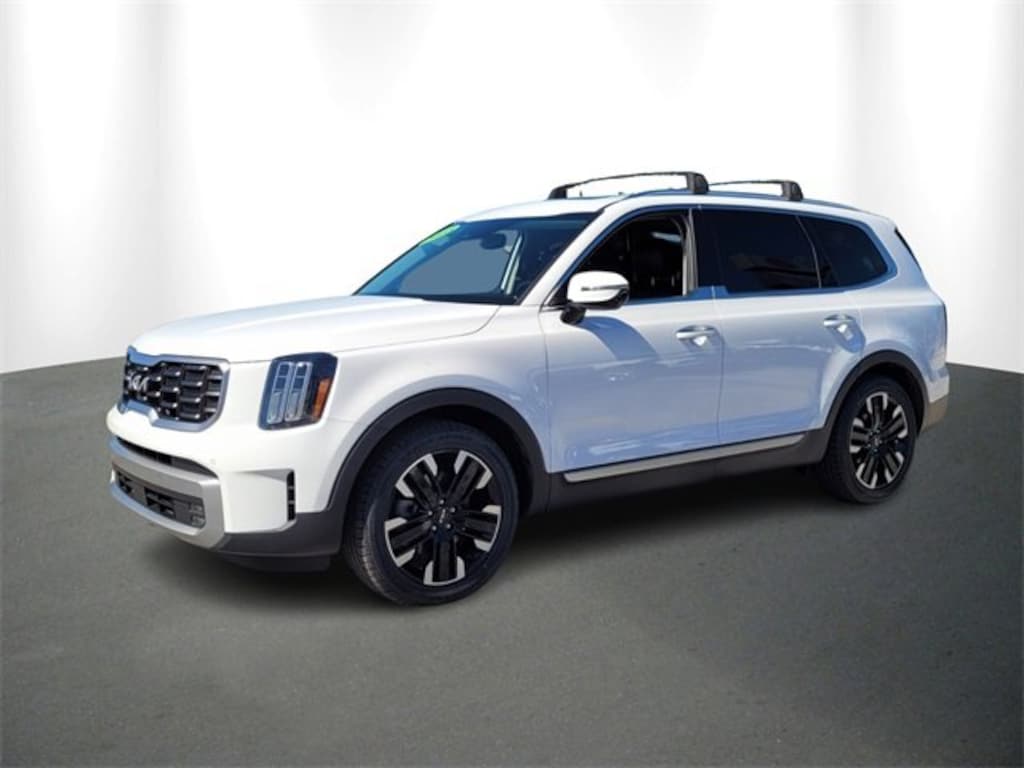 2023 Kia Telluride SX 10 Speakers, 3.510 Axle Ratio, 3rd row seats: split-bench, 4-Wheel Disc Brakes, ABS brakes, Air Conditioning, Alloy wheels, AM/FM radio: SiriusXM, Apple CarPlay & Android Auto, Auto High-beam Headlights, Auto-dimming Rear-View mirror, Automatic temperature control, Brake assist, Bumpers: body-color, Carpet Floor Mats, Compass, Delay-off headlights, Driver door bin, Driver vanity mirror, Dual front impact airbags, Dual front side impact airbags, Electronic Stability Control, Emergency communication system: 911 Connect, Exterior Parking Camera Rear, Four wheel independent suspension, Front anti-roll bar, Front Bucket Seats, Front Center Armrest, Front dual zone A/C, Front fog lights, Front reading lights, Fully automatic headlights, Garage door transmitter: HomeLink, harman/kardon® Speakers, Heated & Ventilated Front Bucket Seats, Heated door mirrors, Heated front seats, Illuminated entry, Knee airbag, Leather Seat Trim, Leather Shift Knob, Leather steering wheel, Low tire pressure warning, Memory seat, Navigation System, Occupant sensing airbag, Outside temperature display, Overhead airbag, Overhead console, Panic alarm, Passenger door bin, Passenger vanity mirror, Power door mirrors, Power driver seat, Power Liftgate, Power moonroof, Power passenger seat, Power steering, Power windows, Radio data system, Radio: AM/FM harman/kardon Premium Audio System, Rear air conditioning, Rear anti-roll bar, Rear audio controls, Rear reading lights, Rear side impact airbag, Rear window defroster, Rear window wiper, Reclining 3rd row seat, Remote keyless entry, Roof rack: rails only, Security system, Self-Leveling Rear Suspension, Smart Key w/ Push Button and Remote Start, Speed control, Speed-sensing steering, Split folding rear seat, Spoiler, Steering wheel mounted audio controls, Tachometer, Telescoping steering wheel, Tilt steering wheel, Traction control, Trip computer, Turn signal indicator mirrors, Variably intermittent wipers, Ventilated front seats, Wheels: 20 x 7.5 Black Finish. 20/26 City/Highway MPG