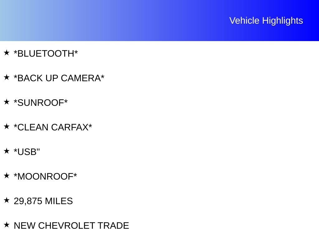 *BLUETOOTH*, *BACK UP CAMERA*, *SUNROOF*, *CLEAN CARFAX*, *USB, *MOONROOF*, 10.25 High-Resolution Center Display, 3-Zone Climate Control, Air Conditioning, Android Auto®, Apple CarPlay®, Apple CarPlay®/Android Auto®, Automatic temperature control, Burmester® Premium Sound System, Dual front impact airbags, Dual front side impact airbags, Emergency communication system: Mercedes me connect, Exterior Parking Camera Rear, Front dual zone A/C, Fully automatic headlights, Garage door transmitter: Homelink, Heated Front Seats, Knee airbag, Occupant sensing airbag, Overhead airbag, Power driver seat, Power moonroof, Power passenger seat, Rear side impact airbag, SiriusXM Satellite Radio, Smartphone Integration, Speed control, Steering wheel mounted audio controls, 4-way Power Driver's Lumbar Support, 4-Wheel Disc Brakes, 5 Speakers, ABS brakes, Alloy wheels, AM/FM radio, Anti-whiplash front head restraints, Auto tilt-away steering wheel, Auto-dimming door mirrors, Auto-dimming Rear-View mirror, Brake assist, Bumpers: body-color, Child-Seat-Sensing Airbag, Compass, Delay-off headlights, Driver door bin, Driver vanity mirror, Electronic Stability Control, Four wheel independent suspension, Front anti-roll bar, Front Bucket Seats, Front Center Armrest, Front reading lights, Genuine wood console insert, Genuine wood dashboard insert, Genuine wood door panel insert, HD Radio, Head restraints memory, Heated door mirrors, Illuminated entry, Low tire pressure warning, MB-Tex Upholstery, Memory seat, Outside temperature display, Overhead console, Panic alarm, Passenger door bin, Passenger vanity mirror, Power adjustable front head restraints, Power door mirrors, Power Front Seats w/Driver Memory, Power steering, Power windows, Radio data system, Radio: Audio 20, Rain sensing wipers, Rear anti-roll bar, Rear fog lights, Rear reading lights, Rear seat center armrest, Rear window defroster, Remote keyless entry, Security system, Speed-sensing steering, Split folding rear seat, Steering wheel memory, Tachometer, Telescoping steering wheel, Tilt steering wheel, Traction control, Trip computer, Turn signal indicator mirrors, Variably intermittent wipers, Weather band radio, Wheels: 18 Twin 5-Spoke, 29,875 MILES, NEW CHEVROLET TRADE, 255 HP 2.0L Turbo I4, 10.25 High-Resolution Center Display, 3-Zone Climate Control, Air Conditioning, Android Auto®, Apple CarPlay®, Apple CarPlay®/Android Auto®, Automatic temperature control, Burmester® Premium Sound System, Dual front impact airbags, Dual front side impact airbags, Emergency communication system: Mercedes me connect, Exterior Parking Camera Rear, Front dual zone A/C, Fully automatic headlights, Garage door transmitter: Homelink, Heated Front Seats, Knee airbag, Occupant sensing airbag, Overhead airbag, Power driver seat, Power moonroof, Power passenger seat, Rear side impact airbag, SiriusXM Satellite Radio, Smartphone Integration, Speed control, Steering wheel mounted audio controls.