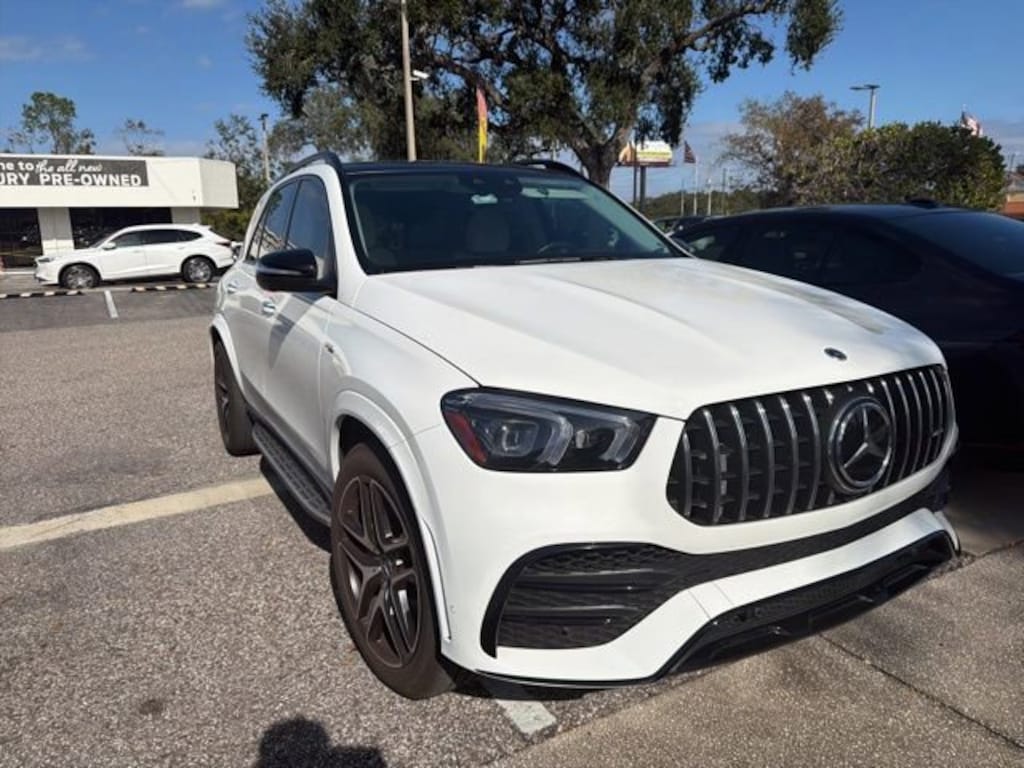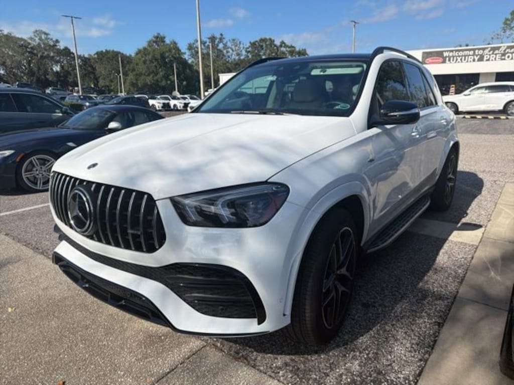 NAVIGATION*, SUNROOF*, BACK UP CAMERA*, HEATED SEATS*, BLIND SPOT MONITOR*, LANE DEPARTURE WARNING*, GLE GLE 53 AMG® 4MATIC®, 4D Sport Utility, 3.0L I6 Turbo, 9-Speed Automatic, 4MATIC®, White, Black/White Leatherette, 13 Speakers, 4-Wheel Disc Brakes, ABS brakes, Adaptive suspension, Alloy wheels, Android Auto®, Anti-whiplash front head restraints, Apple CarPlay®, Auto-leveling suspension, Automatic temperature control, Brake assist, Burmester® Surround Sound System, Delay-off headlights, Dual front impact airbags, Dual front side impact airbags, eCall Emergency System, Electronic Stability Control, Emergency communication system: eCall Emergency System, Exterior Parking Camera Rear, Four wheel independent suspension, Front anti-roll bar, Front Bucket Seats, Front dual zone A/C, Fully automatic headlights, HD Radio, Heated front seats, HERMES Communications Module LTE, Knee airbag, Leather steering wheel, Live Traffic, Low tire pressure warning, MB Navigation, MBUX Voice Control, Memory seat, Navigation Services, Navigation system: MBUX, Navigation Updates For 3 Years, NFC Wireless Charging, Occupant sensing airbag, Overhead airbag, Panic alarm, Power adjustable front head restraints, Power Liftgate, Power moonroof, Premium audio system: MBUX, Radio data system, Radio: MBUX Multimedia System, Rain sensing wipers, Rear anti-roll bar, Rear window wiper, Remote keyless entry, Security system, SiriusXM Satellite Radio, Smartphone Integration, Speed-sensing steering, Speed-Sensitive Wipers, Spoiler, Steering wheel memory, Steering wheel mounted audio controls, Tachometer, Telescoping steering wheel, Tilt steering wheel, Traction control, Wide Screen Cockpit.