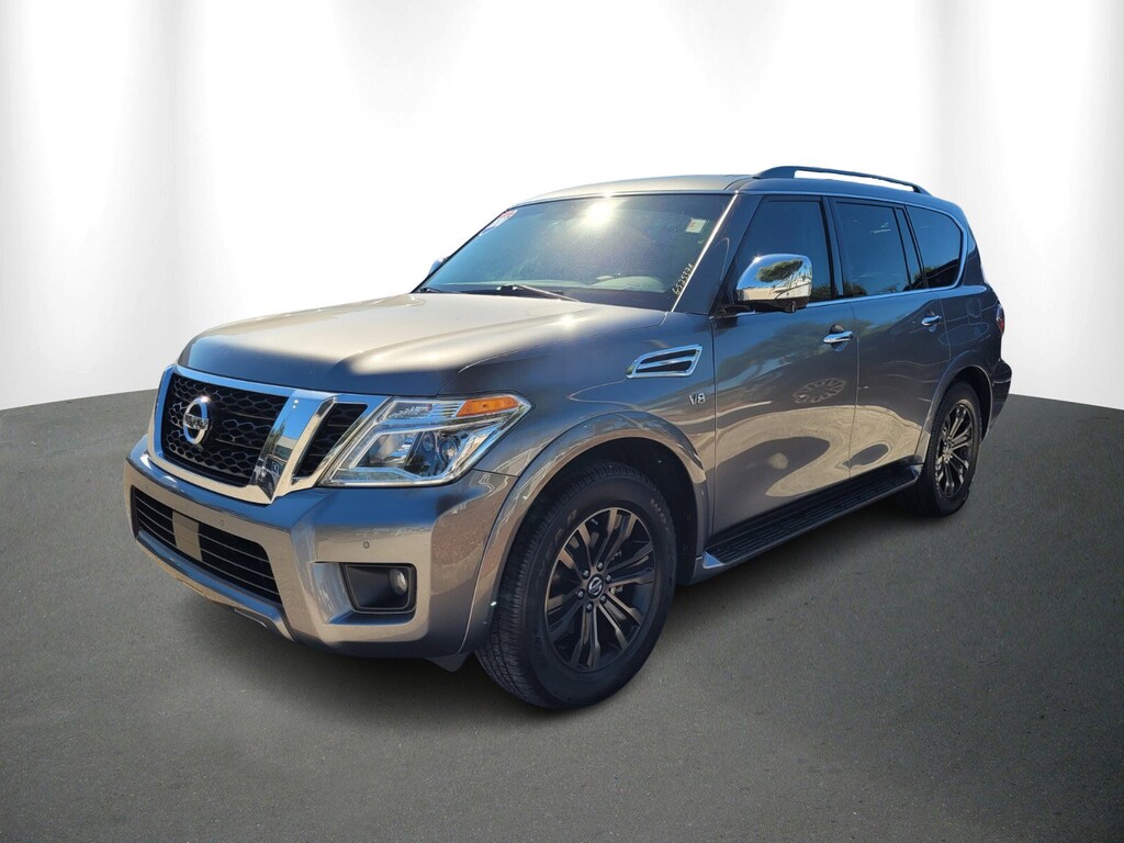 2020 Nissan Armada Platinum Platinum 2nd Row Captain's Chairs, 2nd Row Center Console w/Padded Armrest, Captain's Chairs Package, Cargo Package, Navigation System, 13 Speakers, 3rd Row Carpeted Floor Mats - Captain Seat, 3rd row seats: split-bench, 4-Wheel Disc Brakes, A/V remote, ABS brakes, Air Conditioning, Alloy wheels, AM/FM radio: SiriusXM, Anti-whiplash front head restraints, Auto tilt-away steering wheel, Auto-dimming door mirrors, Auto-dimming Rear-View mirror, Auto-leveling suspension, Automatic temperature control, Axle Ratio: 2.94, Brake assist, Bumpers: body-color, CD player, Cross Bars, Delay-off headlights, Driver door bin, Driver vanity mirror, Dual front impact airbags, Dual front side impact airbags, DVD-Audio, Electronic Stability Control, Emergency communication system: NissanConnect Services, Exterior Parking Camera Rear, Four wheel independent suspension, Front anti-roll bar, Front Bucket Seats, Front Center Armrest, Front dual zone A/C, Front fog lights, Front reading lights, Fully automatic headlights, Garage door transmitter: HomeLink, Headphones, Heated & Cooled Front Bucket Seats, Heated door mirrors, Heated front seats, Heated rear seats, Heated steering wheel, Illuminated entry, Illuminated Kick Plates, Leather Shift Knob, Leather-Appointed Seat Trim, Low tire pressure warning, Memory seat, Occupant sensing airbag, Outside temperature display, Overhead airbag, Overhead console, Panic alarm, Passenger door bin, Passenger vanity mirror, Power door mirrors, Power driver seat, Power Liftgate, Power moonroof, Power passenger seat, Power steering, Power windows, Radio data system, Radio: AM/FM/SXM/CD/MP3/HD, Rain sensing wipers, Rear air conditioning, Rear anti-roll bar, Rear reading lights, Rear seat center armrest, Rear window defroster, Rear window wiper, Reclining 3rd row seat, Remote keyless entry, Security system, Speed control, Speed-sensing steering, Speed-Sensitive Wipers, Split folding rear seat, Spoiler, Steering wheel memory, Steering wheel mounted audio controls, Tachometer, Telescoping steering wheel, Tilt steering wheel, Traction control, Trip computer, Turn signal indicator mirrors, Variably intermittent wipers, Ventilated front seats, Voltmeter, Welcome Lighting, Wheels: 20 Machine-Faced w/Tinted Clear Coat, 2nd Row Captain's Chairs, 2nd Row Center Console w/Padded Armrest, Captain's Chairs Package, Cargo Package, Navigation System.