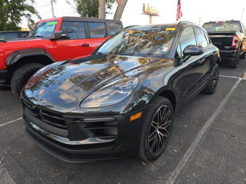 CARFAX 1-OWNER VEHICLE, LOCAL TRADE, The 2025 Porsche Macan S is a refined expression of sporty luxury wrapped in the versatile body of a compact SUV. From the moment you climb inside and press the start button, this model delivers a dynamic driving experience that echoes the brands performance DNA yet packaged in a way thats practical for daily use. Performance & Dynamics At the heart of the Macan S is a 2.9-liter twin-turbo V6 engine that outputs 375 hp and 383 lb-ft of torque. Car and Driver +3 porschedetroitnorth.com +3 porschechantilly.com +3 This potent powerplant, paired with the standard all-wheel drive and Porsches 7-speed PDK dual-clutch transmission, catapults the Macan S from 060 mph in approximately 4.6 seconds, with a top speed around 161 mph. Porsche Atlanta Perimeter +2 porschedetroitnorth.com +2 Handling is equally impressive: Porsche Active Suspension Management (PASM) is standard on this trim, delivering a composed yet responsive ride whether youre carving corners or navigating everyday traffic. Porsche Irvine +1 Design & Exterior Appeal Visually, the Macan S retains the tightly-crafted stance of a sports sedan more than a typical SUV. Wide hips, a muscular shoulder line and purposeful front fascia give it athletic presence. Model-specific touches such as dual twin-tailpipes in matte silver finish, red brake calipers, and 20-inch Macan S wheels in highly polished dark titanium set it apart from lesser trims. Porsche Irvine The roofline sweeps gently toward the rear, preserving a low-slung look that helps reinforce its driver-focused character. Interior & Practicality Inside, the interior showcases high-grade materials and a driver-centric layout. Youll find a large touchscreen infotainment system, premium upholstery options and the kind of fit-and-finish you expect from Porsche. On the practical side, the Macan S offers seating for five, inclusive of a generous rear bench, and cargo space that can handle day-to-day needs: approximately 17.2 cu ft behind the rear seats. Edmunds +1 Standard features include the 7-speed PDK transmission, PASM suspension, ParkAssist with active parking support and a well-specified driver-aid suite. Porsche Fremont Efficiency & Cost of Entry While the focus here is on performance, the Macan S still offers a credible balance: EPA combined fuel economy is rated at around 19 mpg. Edmunds +1 As for cost, the starting MSRP for the Macan S is around $74,500 (excluding options, tax, destination, etc.). Porsche Irvine +1.