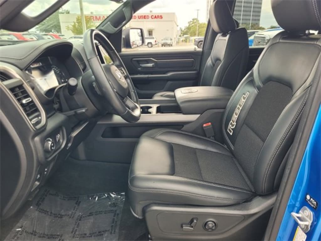 2021 Ram 1500 Rebel Odometer is 14059 miles below market average! 1-Yr SiriusXM Guardian Trial, 3.92 Rear Axle Ratio, 4 Way Front Headrests, 4-Wheel Disc Brakes, 48V Belt Starter Generator, 4G LTE Wi-Fi Hot Spot, 5-Year SiriusXM Traffic Service, 5-Year SiriusXM Travel Link Service, 6 Speakers, 8.4 Touchscreen Display, ABS brakes, Air Conditioning, Air Conditioning ATC w/Dual Zone Control, Alloy wheels, AM/FM radio: SiriusXM, Apple CarPlay, Auto-Dimming Exterior Driver Mirror, Auto-dimming Rear-View mirror, Black Exterior Mirrors, Black Premium Power Mirrors, Brake assist, Bucket Seats, Cloth/Vinyl Low Back Bucket Seats, Compass, Delay-off headlights, Disassociated Touchscreen Display, Driver door bin, Dual front impact airbags, Dual front side impact airbags, Electronic Stability Control, Exterior Mirrors Courtesy Lamps, Exterior Mirrors w/Supplemental Signals, Foam Bottle Insert (Door Trim Panel), For Details, Visit DriveUconnect.com, For More Info, Call 800-643-2112, Front anti-roll bar, Front Bucket Seats, Front Center Armrest w/Storage, Front fog lights, Front reading lights, Front Seat Back Map Pockets, Front wheel independent suspension, Full Length Upgraded Floor Console, Fully automatic headlights, Google Android Auto, GPS Antenna Input, GPS Navigation, HD Radio, Heated door mirrors, Heated Front Seats, Heated Steering Wheel, Illuminated entry, Instrument Cluster Theme 5 - Rebel 2, Integrated Center Stack Radio, Integrated Voice Command w/Bluetooth, Leather steering wheel, Low tire pressure warning, Manufacturer's Statement of Origin, Occupant sensing airbag, Outside temperature display, Overhead airbag, Overhead console, Panic alarm, ParkView Rear Back-Up Camera, Passenger door bin, Passenger vanity mirror, Power 4-Way Driver Lumbar Adjust, Power Adjustable Pedals, Power door mirrors, Power driver seat, Power steering, Power windows, Power-Folding Mirrors, Quick Order Package 25W Rebel, Radio data system, Radio: Uconnect 3 w/5 Display, Radio: Uconnect 4C Nav w/8.4 Display, Rear 60/40 Folding Seat, Rear anti-roll bar, Rear Dome w/On/Off Switch Lamp, Rear seat center armrest, Rear step bumper, Rear Window Defroster, Rebel Level 1 Equipment Group, Remote keyless entry, SiriusXM Radio Service, SiriusXM Satellite Radio, SiriusXM Traffic Plus, SiriusXM Travel Link, Speed control, Split folding rear seat, Steering wheel mounted audio controls, Sun Visors w/Illuminated Vanity Mirrors, Tachometer, Telescoping steering wheel, Tilt steering wheel, Traction control, Trip computer, Universal Garage Door Opener, USB Host Flip, Variably intermittent wipers, Voltmeter, Wheels: 18 x 8.0 Painted Mid-Gloss Black. 15/21 City/Highway MPG